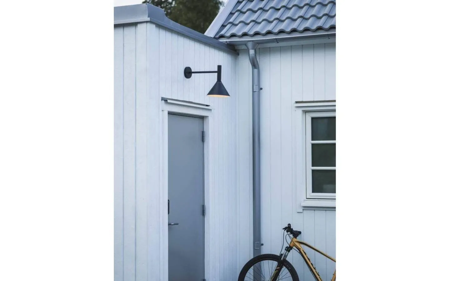 Stilren vägglampa för utomhusbruk, från välkända PR Home. Denna fasadbelysning är gjord i plåt och har en svart pulverlackerad finish. Med Tripp vägglampa får du en snygg ljusspridning nedåt på fasaden och denna vägglampa passar lika bra utanför ytterdörren som på ett förråd eller på garaget.