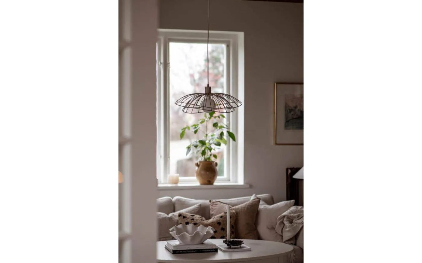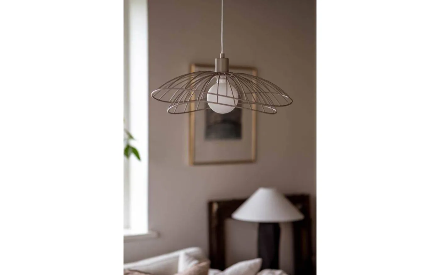 Denna modellen är i beigelackerad metall med en matt finish. En riktigt fullträff! Du väljer själv om du önskar placera de två skärmarna ovanpå varandra eller inuti varandra, detta gör att Rays design är flexibel och kan enkelt varieras efter eget önskemål och utrymme. Kombinera lampan med en dekorativ, lite större ljuskälla för bästa resultat.