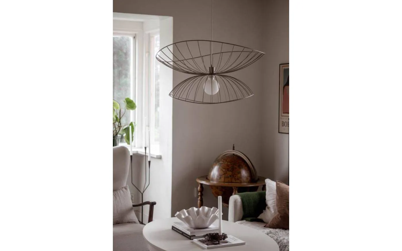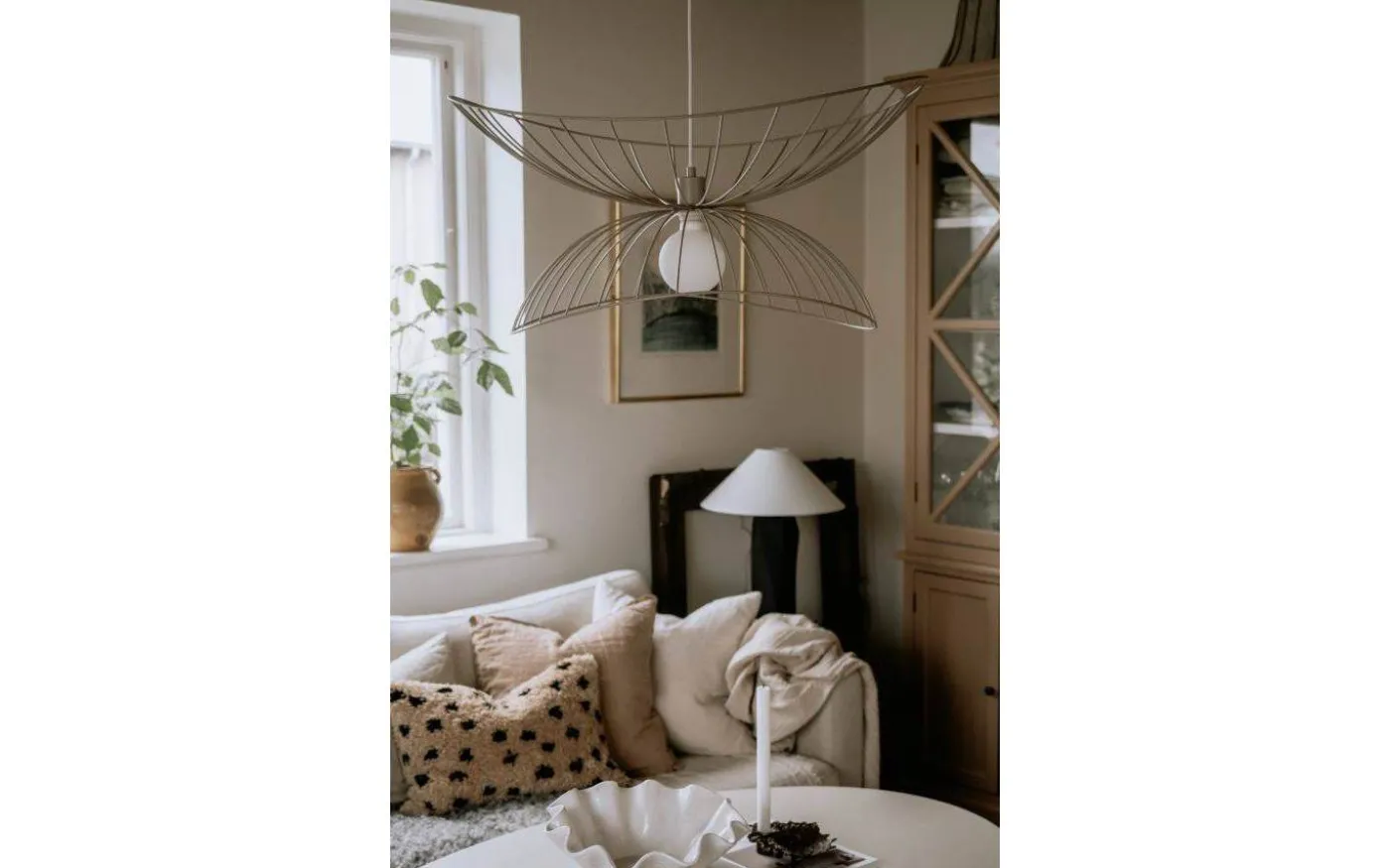 Ray taklampa från välkända Globen Lighting är en riktigt läcker taklampa i grafisk och industriell design. Trots att den är gjord i metall har den härligt mjuka och böljande former som kombineras med de raka metallstängerna. Designad av Patrick Hall.
