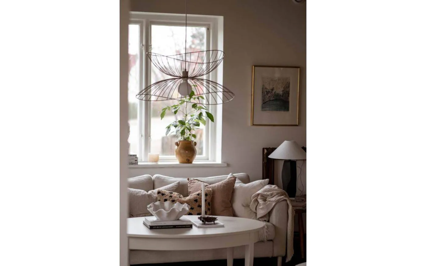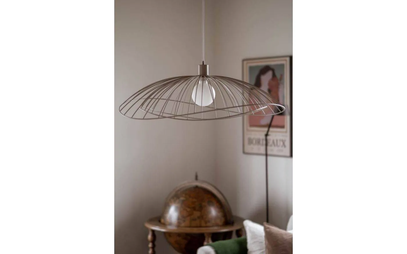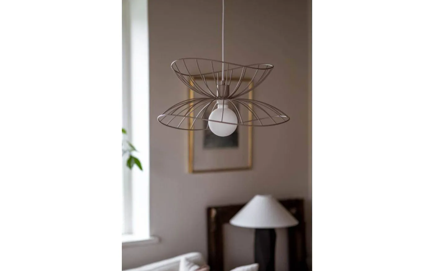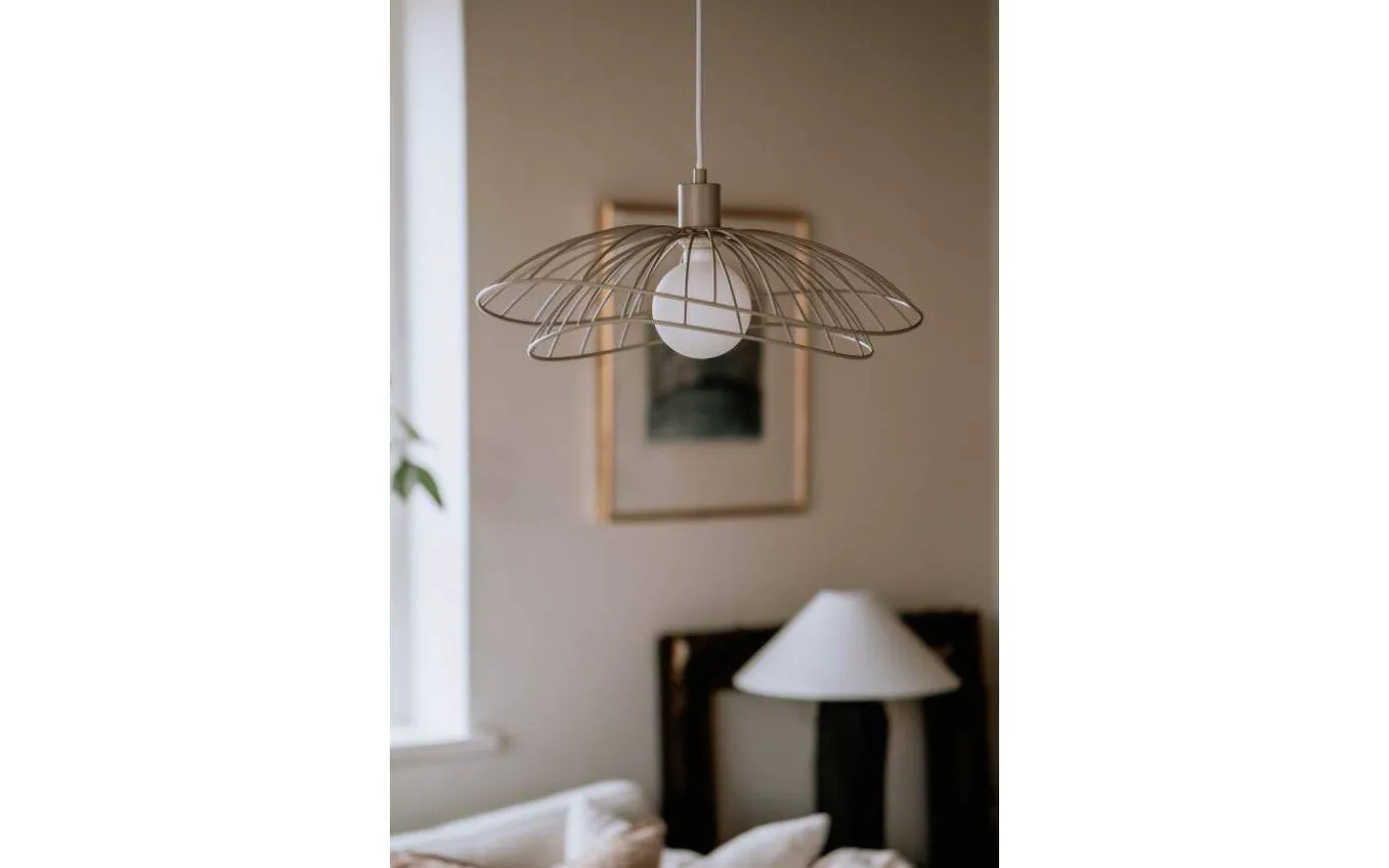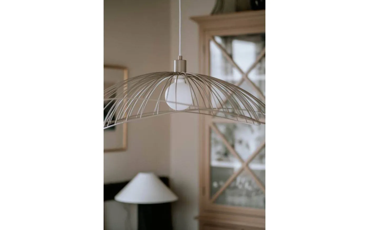 Denna modellen är i beigelackerad metall med en matt finish. En riktigt fullträff! Du väljer själv om du önskar placera de två skärmarna ovanpå varandra eller inuti varandra, detta gör att Rays design är flexibel och kan enkelt varieras efter eget önskemål och utrymme. Kombinera lampan med en dekorativ, lite större ljuskälla för bästa resultat.