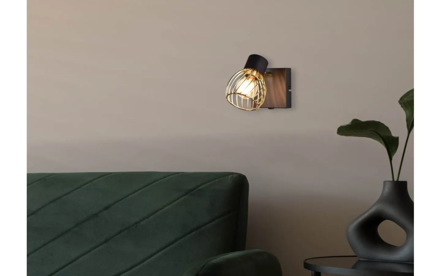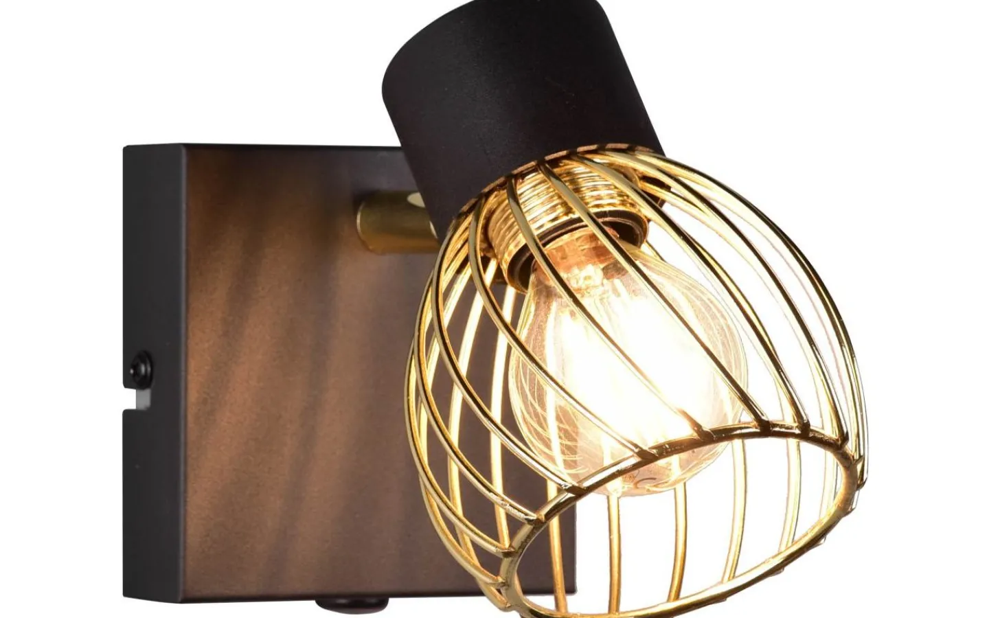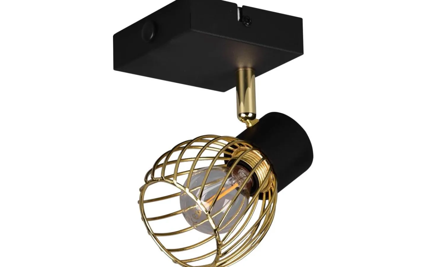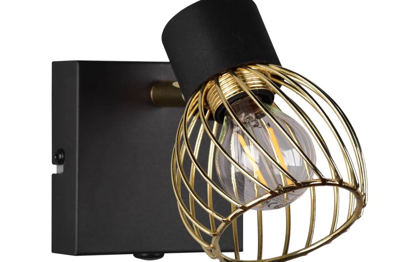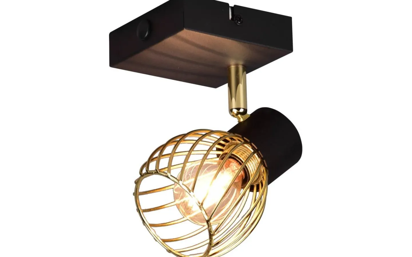 Den enlågiga ARDON-spotlighten är en garanterad blickfångare i ditt hem och imponerar med sitt dekorativa metallhölje i industriell stil. Det intressanta ljusspelet som lyser på väggen eller taket skapar en speciell atmosfär i ditt vardagsrum eller sovrum. Med den moderna färgkombinationen av matt svart och guld smälter ljuset enkelt in i befintliga inredningsstilar. För modern och pålitlig belysning rekommenderas en LED-lampa. Den erbjuder hög ljuskvalitet, är mångsidig och övertygar med jämn belysning. Dess långa livslängd och låga värmeutveckling gör den till det perfekta valet för en mängd olika användningsområden. Ljuskälla: exklusivt 1x E14 · max. 10W. Extra information: Funktion122, IP20, Lampa(or) ingår ej, Vägg- och takmontering