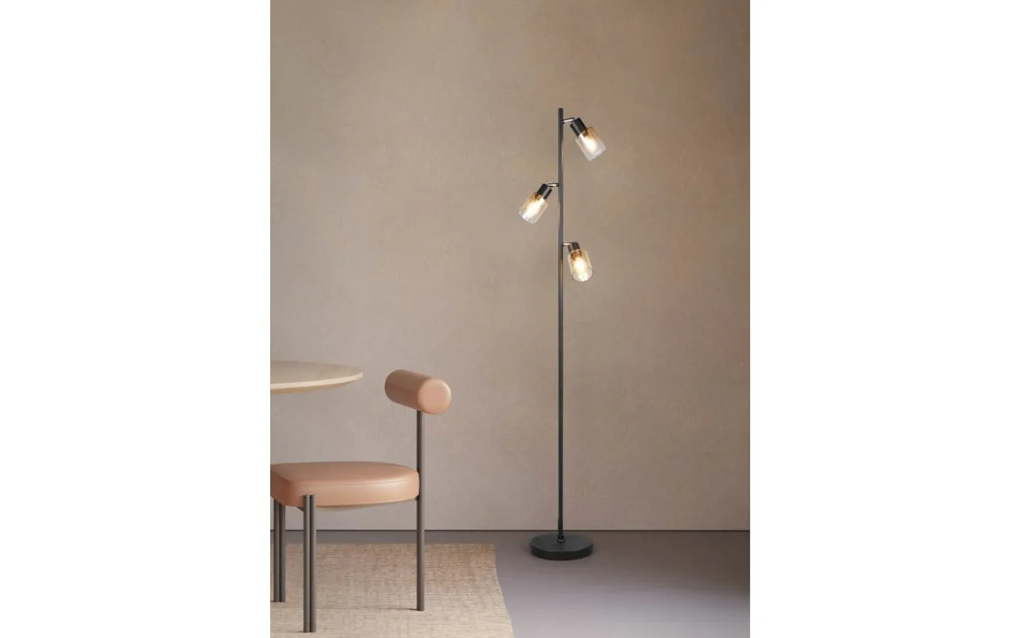 Reality Cadiz Golvlampa 3-delad E14 matt svart/bärnsten* Golvlampor|Golvläslampor