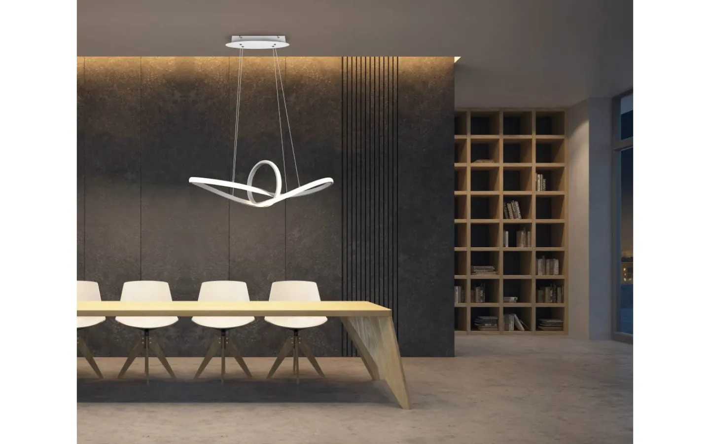 De ovanliga lamporna i SANSA-serien imponerar med sin böjda design. Pendellampan består av ett kontinuerligt ljuselement och blir ett centralt element i ditt vardagsrum. Den integrerade SWITCH-dimmern gör att ljuset kan ställas in i tre ljusstyrkenivåer (100 %, 50 % och 25 %) med en vanlig ljusströmbrytare. Även när den är släckt är den moderna lampan ett sofistikerat dekorativt element och skapar skickligt en inblick i din inredning. Den diskreta mattvita färgsättningen avrundar utseendet perfekt. Dessutom använder armaturen modern LED-teknik, som kännetecknas av hög ljuskvalitet och energieffektivitet. Jämfört med konventionella halogenlampor kan upp till 80 % av energikostnaderna sparas. Dessutom har LED-ljuskällor lång livslängd, producerar mindre värme och skyddar miljön. Ljuskälla: inklusive 1x SMD LED, 28W · 1x 3300lm, 4000K. Extra information: 4000K, Justerbar i höjd, Takmontering, IP20, Ej lämplig för extern dimmer, Dimbar via strömbrytare