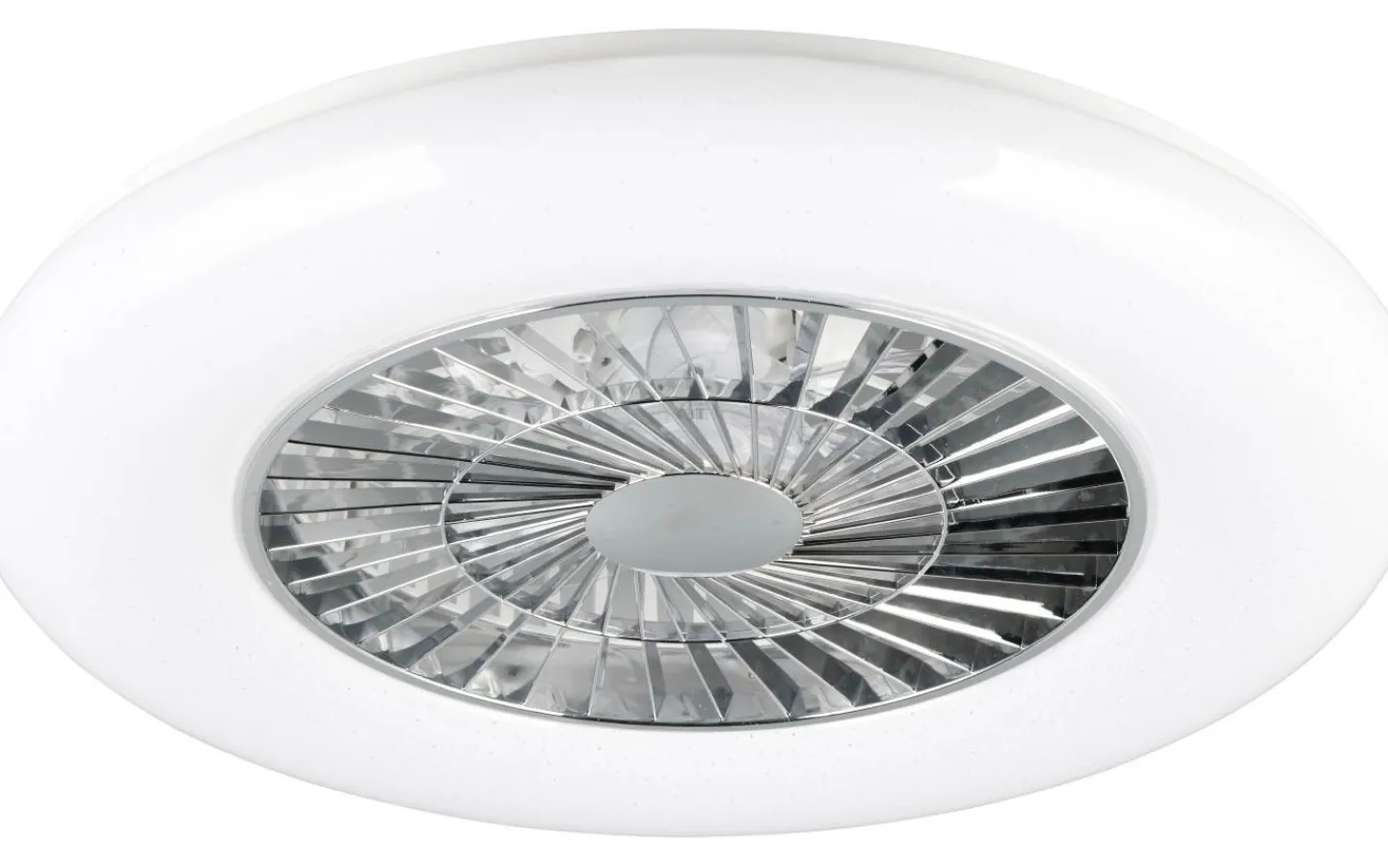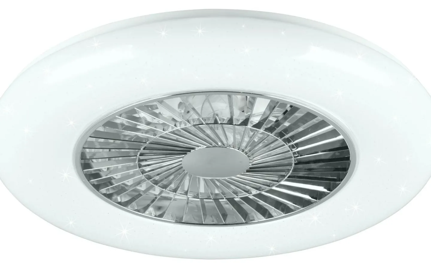 Enkelt praktiskt – VISBY taklampa med integrerad fläkt! Armaturen med trendigt stjärnljusskydd har ett runt utseende och är en riktig allroundare, så att rätt ljus kan skapas beroende på stämning. Ljuset kan dimmas med fjärrkontrollen och ljusfärgen kan steglöst justeras från 3000 – 5500 Kelvin för att skapa rätt ljusatmosfär i rummet. Armaturen har också en nattljusfunktion, som vid behov kan styras via fjärrkontrollen. Den integrerade fläkten har tre hastighetsinställningar, vilket säkerställer en idealisk fördelning av den uppvärmda luften även under den kalla årstiden. Den praktiska taklampan är därför idealisk för kontoret, sovrummet eller alla vardagsrum där sval och uppfriskande luft behövs. Tack vare det enkla färgschemat i vitt och krom kan taklampan enkelt integreras i alla moderna inredningsstilar. Dessutom har armaturerna modern LED-teknik, vilket står för hög ljuskvalitet. LED-ljuskällor kännetecknas av lång livslängd och låg värmeutveckling. Ljuskälla: inklusive 1x SMD LED, 38W · 1x 4400lm, 2700 – 6500K. Extra information: 3 hastighetslägen, Takmontering, Integrerad dimmer, IP20, Steglöst justerbar ljusfärg, Minnesfunktion, Nattlampa, Ej lämplig för extern dimmer, Fjärrkontroll, Separat omkopplingsbar, Stjärnljuseffekt, Funktion 108, Timer, Fläkt
