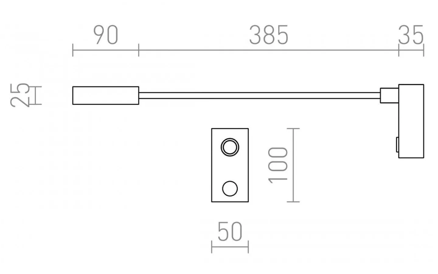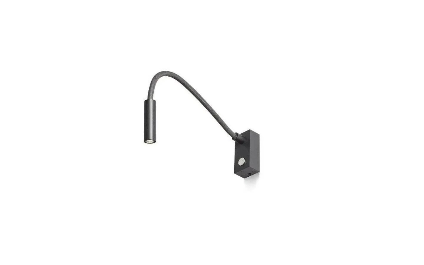 Vägglampa med LED på gåshals. Produkten levereras med en touchbrytare lokaliserad på armaturens bas.