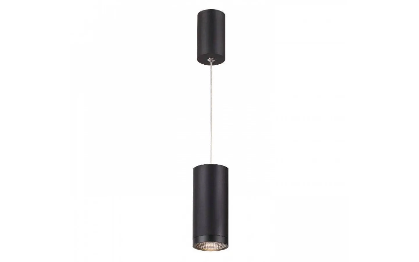 Nerpendlad cylinderformad armatur med inbyggd LED.