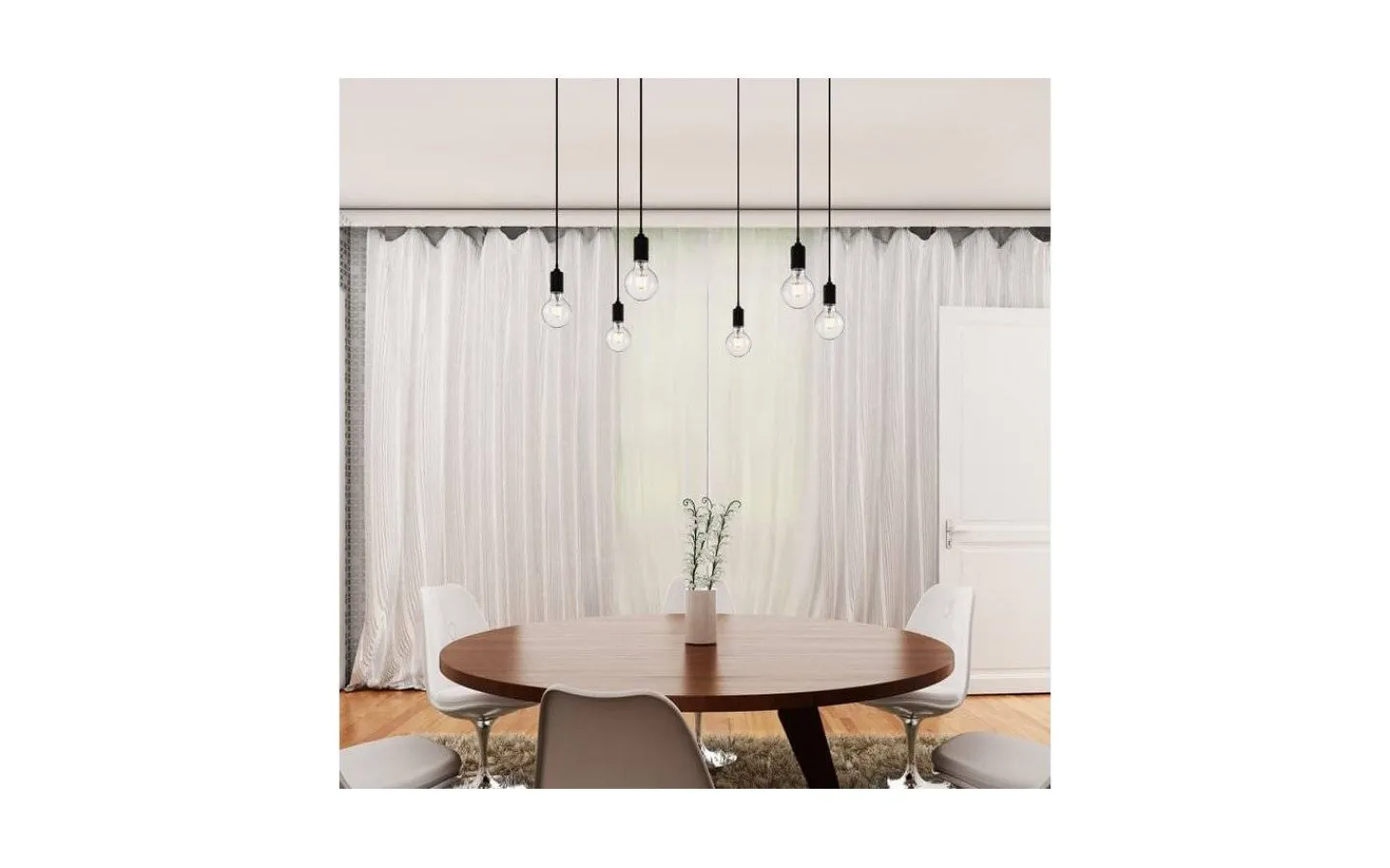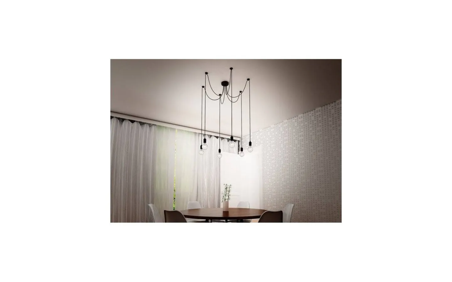 Supersnygg och modern taklampa som består av en central takbas och 6st E27 socklar.