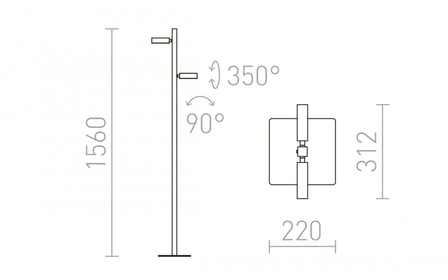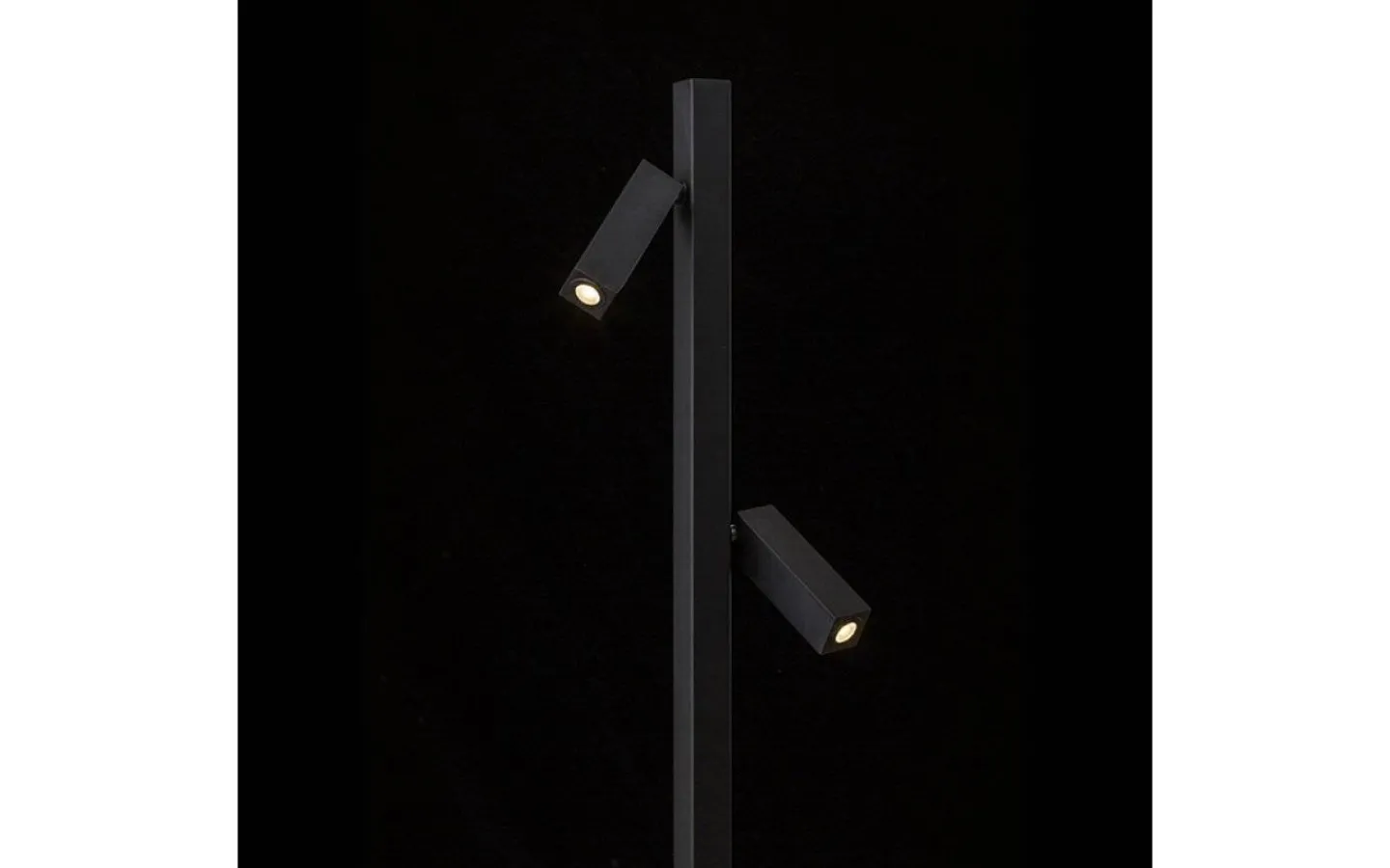Golvlampa i kantig design med två riktbara LED ljuskällor.