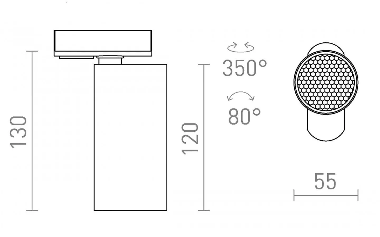 Cylinderformad spotlight med GU10-sockel för 1-fasskena.