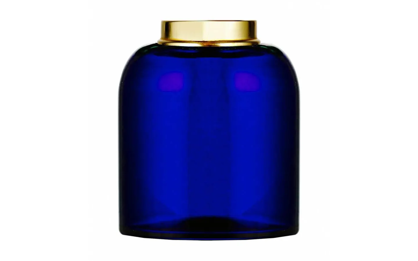 10”’ fotogenoljehus till Skeppsholmen. Coboltfärgat klarglas och mässing 11×9.5 cm 32 mm 45 cl