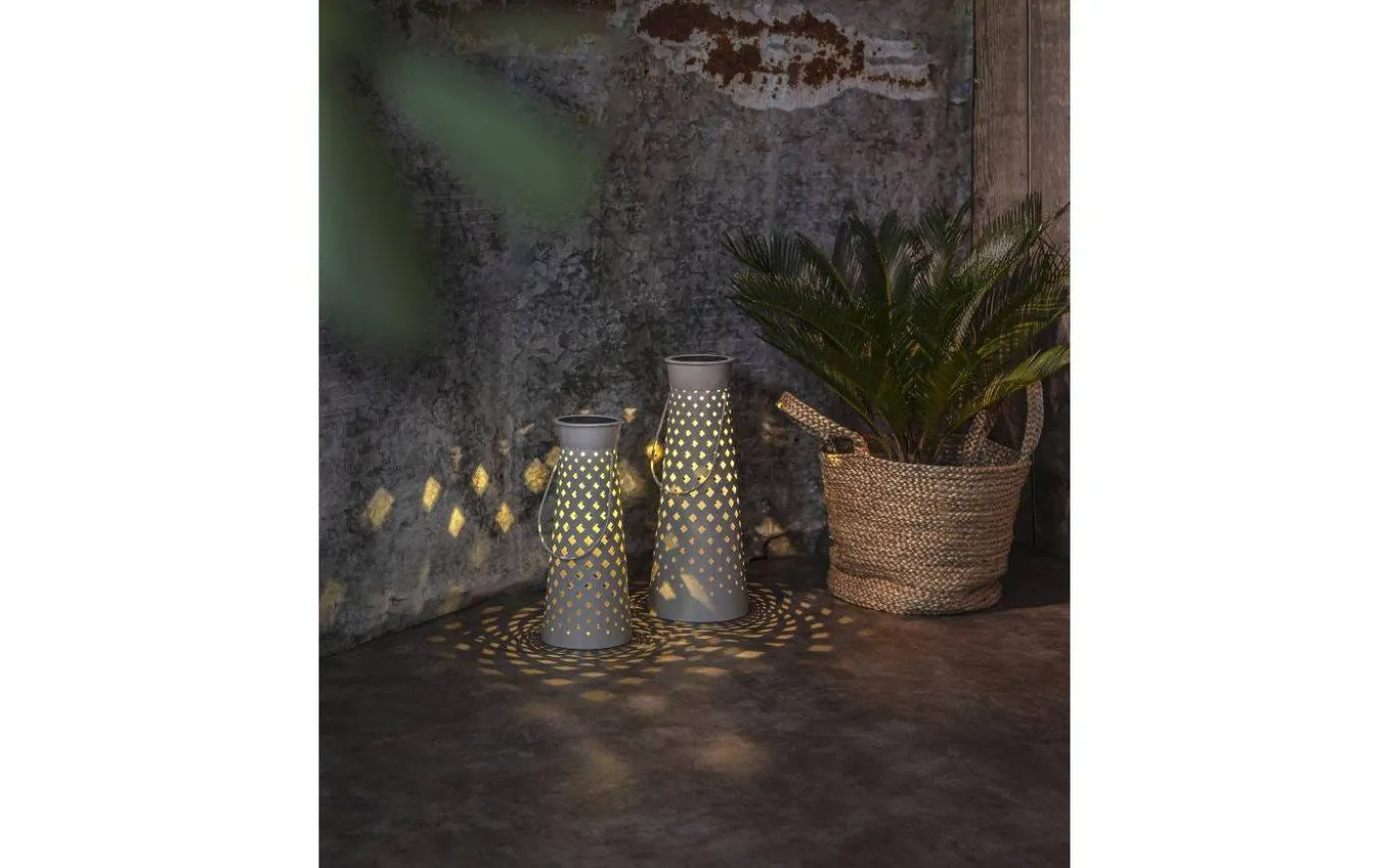 Romby solcellslampa från Star Trading är en snygg solcellslykta gjord i grå metall. Det varmvita ljuset lyser vackert genom det stansade rombmönstret och bildar en vacker ljusbild.