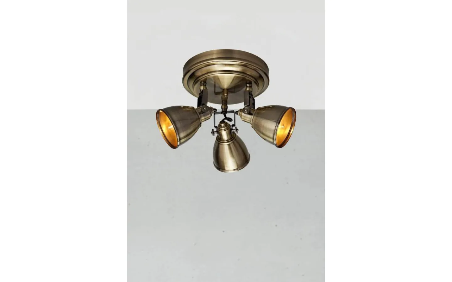 Fina takspotlighten Fjällbacka, från välkända Markslöjd, är en rund takspotlight i antikfärgad metall med tre riktigbara lamphuvuden.