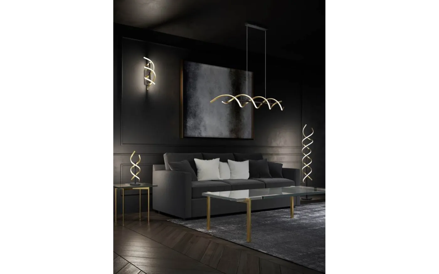 Den iögonfallande och samtidigt eleganta designen hos SEQUENCE-armaturserien kommer att bli ett blickfång i ditt hem. Golvlampan i spiralform har en integrerad sensordimmer så att ljusstyrkan kan justeras steglöst. Dessutom är tre ljusfärger justerbara i steg (varmvit, neutralvit, dagsljusvit). Den eleganta kombinationen av svart matt och mässingsmatt metall skapar speciella ljusaccenter och skapar nya favoritplatser i ditt hem. Dessutom använder armaturerna modern LED-teknik, vilket står för hög ljuskvalitet. LED-ljuskällor kännetecknas av lång livslängd och låg värmeutveckling. Ljuskälla: inklusive 1x SMD, 32W · 1x 4000lm, 2300+3000+4000K. Extra information: Justerbar ljusfärg, Integrerad dimmer, IP20, Minnesfunktion, Sensordimmer