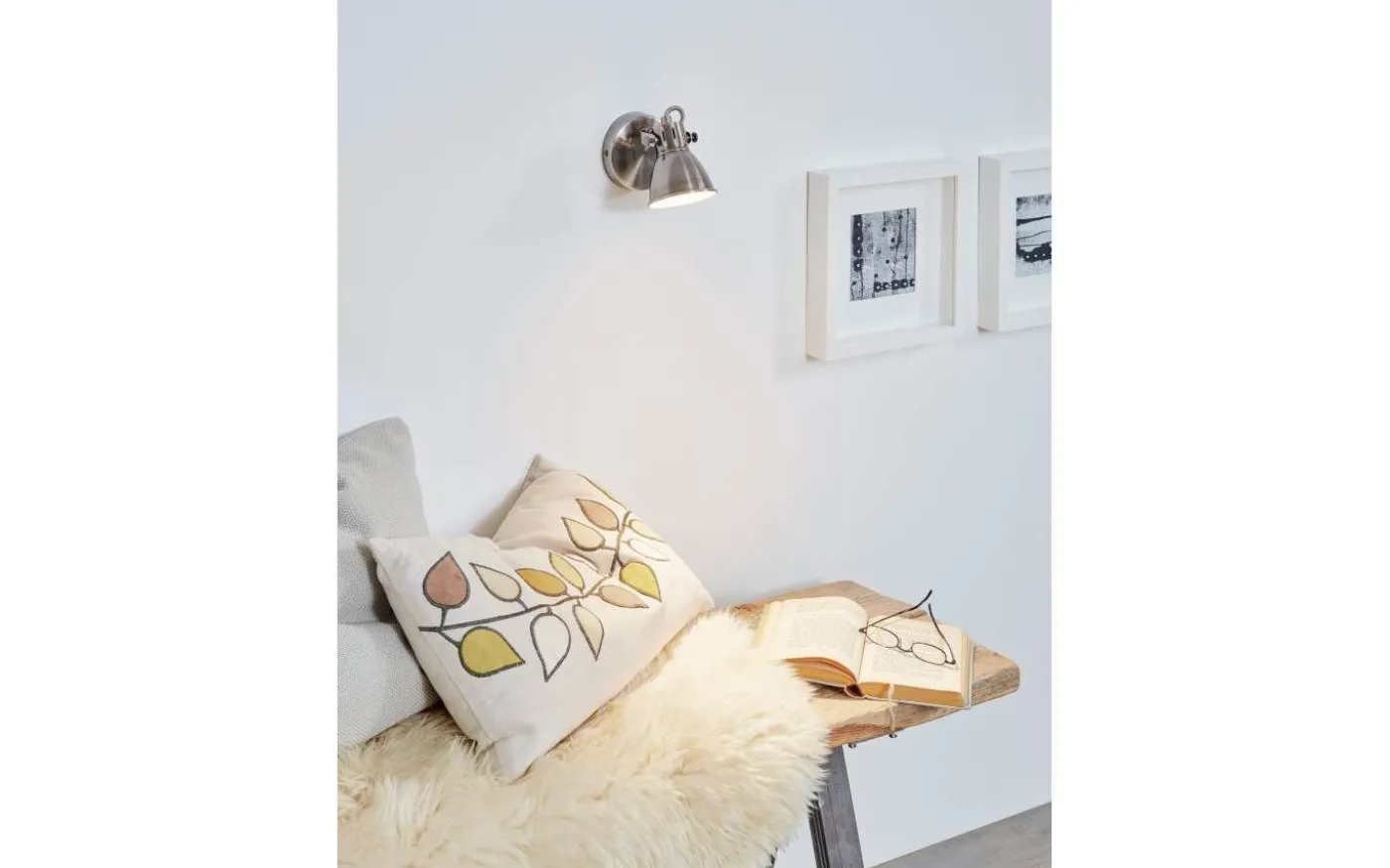 SERAS LED vägg- och taklampa har ett metallfäste i antik nickel och en justerbar metallspotlight med en krämfärgad inneryta. Takspotlightens trendiga utseende kompletterar perfekt moderna interiörer och ger fokuserad belysning i kök, vardagsrum, sovrum, hall eller matsal. Produkten inkluderar den avbildade GU10 LED-glödlampan, som ger ett behagligt varmvitt ljus.