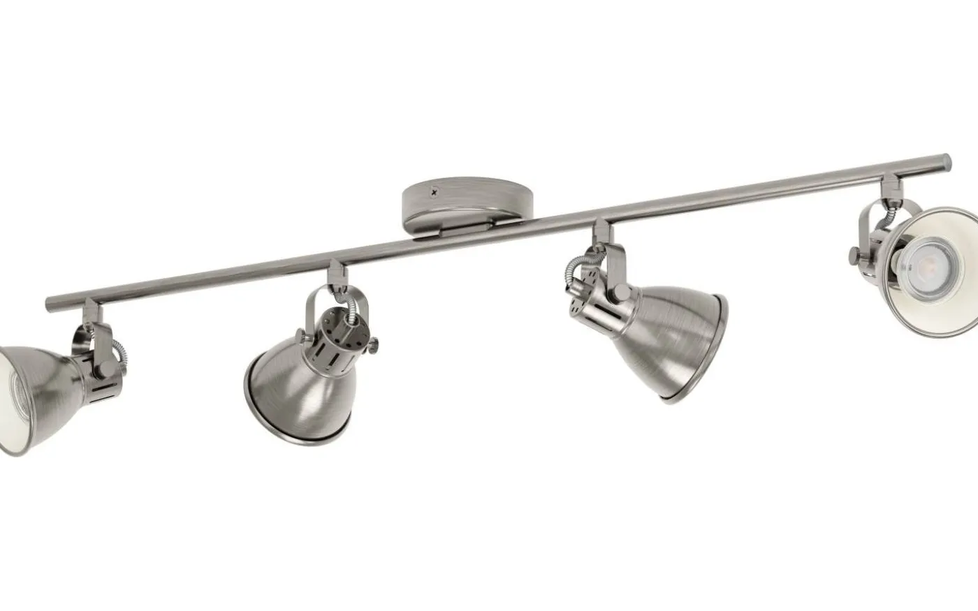 SERAS LED-taklampa är tillverkad av metall i antik nickelfinish och har fyra justerbara spotlights med krämfärgade invändiga ytor. Takspotlightens trendiga distresserade finish kompletterar perfekt moderna interiörer och ger fokuserad belysning i köket, vardagsrummet, sovrummet eller hallen. Produkten inkluderar de avbildade GU10-glödlamporna, som ger ett behagligt varmvitt ljus.