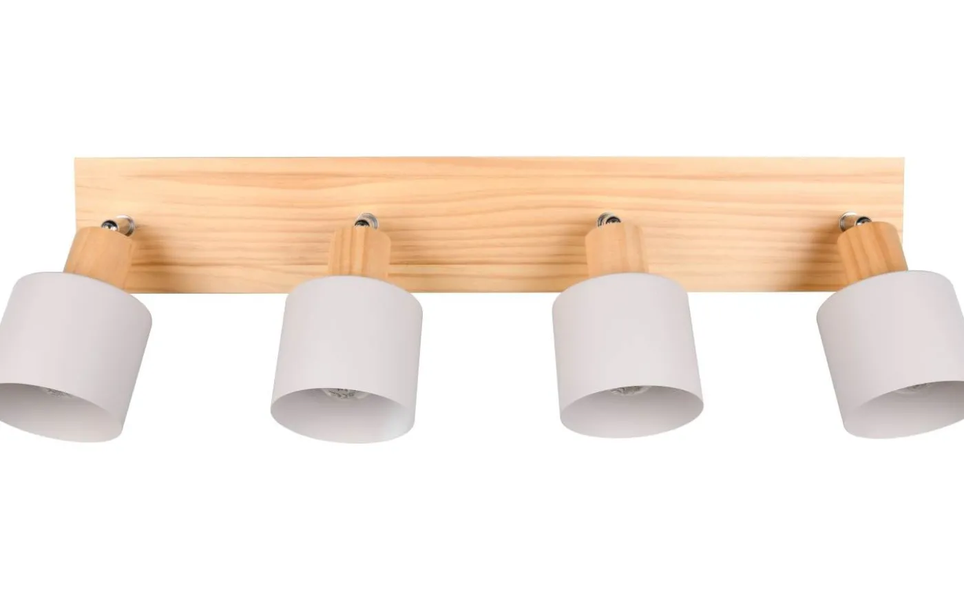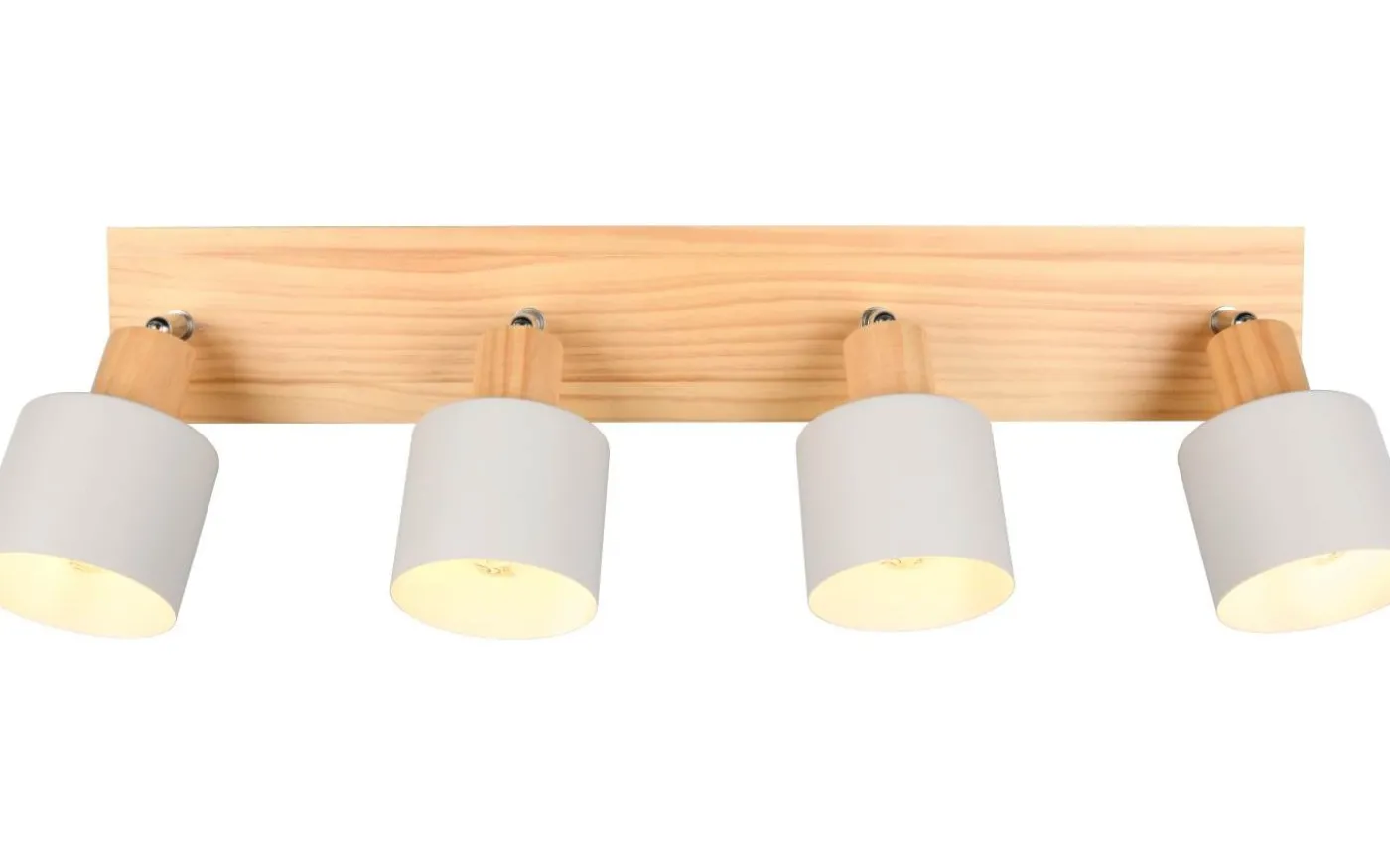 En fascinerande materialmix med lätthet! Spotlighterna i SHANTI-serien kombinerar trä och metall på ett tidlöst sätt, vilket är väldigt trendigt just nu och samtidigt skapar en mysig bostadsatmosfär. Spotlighten med fyra lågor är perfekt för att skapa riktade ljusaccenter i hallen eller vardagsrummet och imponerar med sin flexibla montering på vägg eller tak. Spotlighten imponerar med sin mysiga känsla och sina ljuseffekter! Kombinationen av metall i varmt grått och trä finns i moderna och minimalistiska inredningsstilar. För modern och pålitlig belysning rekommenderas en LED-lampa. Den erbjuder hög ljuskvalitet, är mångsidig och övertygar med jämn belysning. Dess långa livslängd och låga värmeutveckling gör den till det perfekta valet för en mängd olika användningsområden. Ljuskälla: exklusiv 4x E14 · max. 10W. Extra information: Takmontering, IP20, Lampa(or) ingår ej