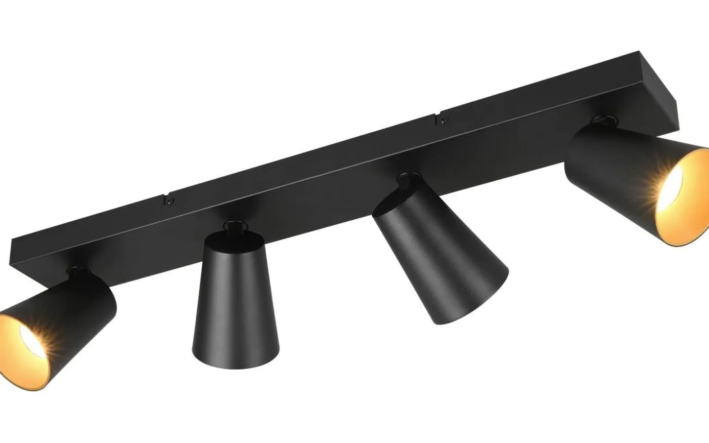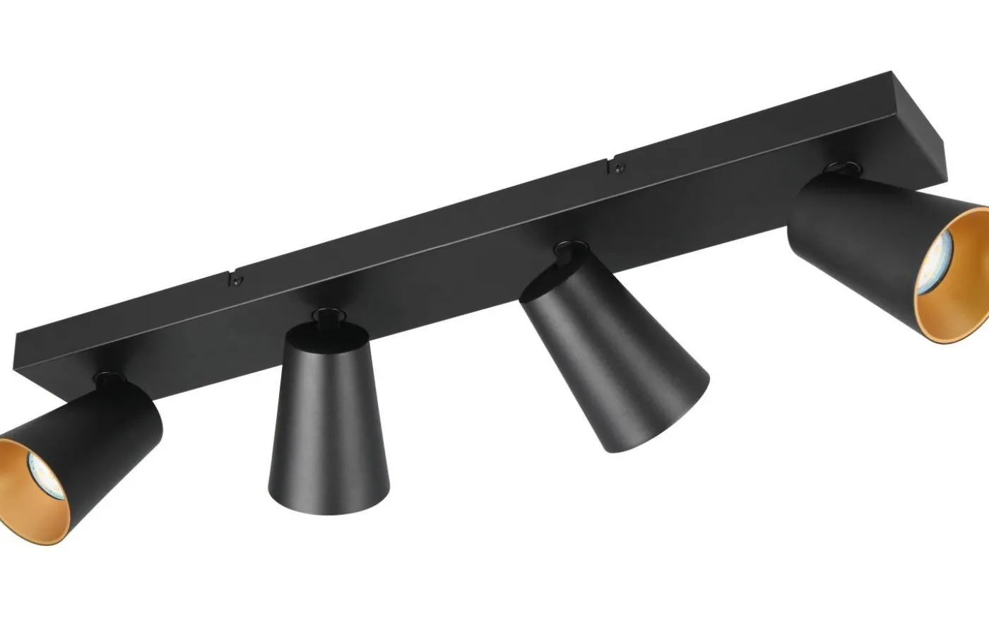 Lamporna i SHARP-serien kännetecknas av sin moderna design och mångsidighet. Tack vare de vridbara spotlighterna är tak- och vägglampan med fyra ljuskällor idealisk som en kompletterande ljuskälla i köket eller i små rum och ger ditt hem en mysig atmosfär. Armaturens eleganta mattsvarta färg ger rummet en sofistikerad touch. De utbytbara skydden i svart och guld erbjuder också ett flexibelt samspel med ljuset. För modern och pålitlig belysning rekommenderas användning av en LED-lampa. Den erbjuder hög ljuskvalitet, är mångsidig och övertygar med jämn belysning. Dess långa livslängd och låga värmeutveckling gör den till det perfekta valet för en mängd olika tillämpningar. Ljuskälla: exklusiv 4x GU10 · max. 10W. Extra information: Takmontering, IP20, Lampa(or) ingår ej