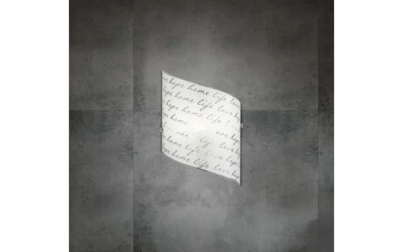 Vägglampan SIGNA imponerar med sin enkla och moderna design. Det satinerade glaset med tydlig text ”Hope.Home.Life.Love.” avger ett mjukt ljus framtill och på sidorna, vilket fyller ditt vardagsrum med individuella ljusaccenter. Detta skapar en harmonisk och inbjudande atmosfär. Det neutrala färgschemat smälter perfekt in i omgivningen och kan därför användas i nästan alla vardagsrum eller hallar, från klassiska till moderna. Vägglampan kan kompletteras perfekt med andra lampor från SIGNA-serien. Vägglampan mäter 20 cm x 30 cm och har en projektionsräckvidd på 9 cm. Lampan är lämplig för ljuskällor med E27-sockel och en maximal effekt på 40 W. Ljuskälla: exklusivt 1x E27 · max. 40 W. Extra information: IP20, Lampa(or) ingår ej, Väggmontering