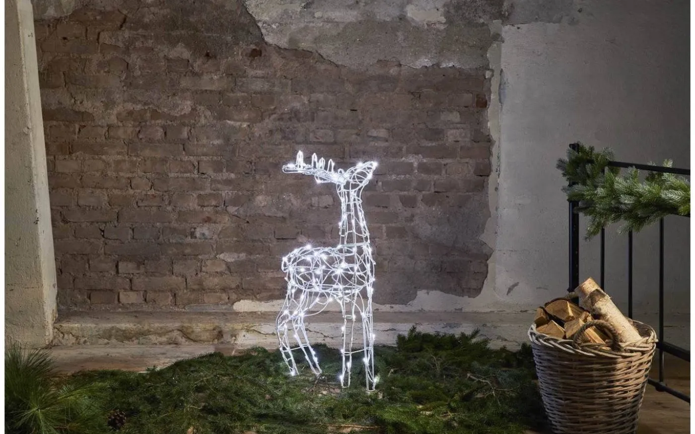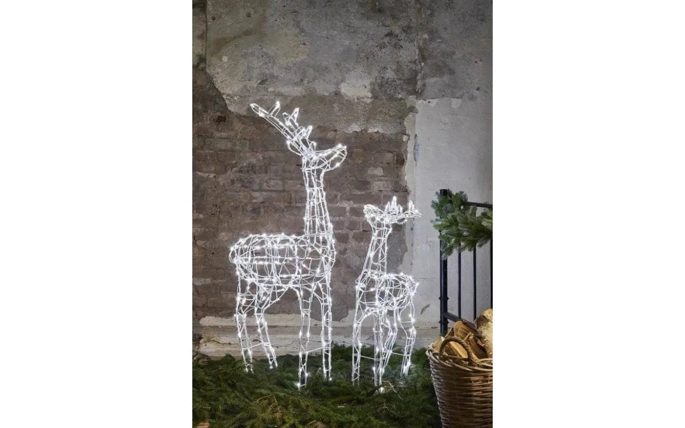 Vackra Siluett Ren, från välkända Star Trading, är den perfekta utomhusdekorationen under juletid. Med sin pampiga höjd på 90cm och 120 ljuspunkter som lyser i ett härligt kallvitt sken blir denna dekoration ett iögonfallande prydnad i trädgården eller på uteplatsen. Levereras med en 5 meter lång anslutningskabel med transformator och stickkontakt för vägguttag.