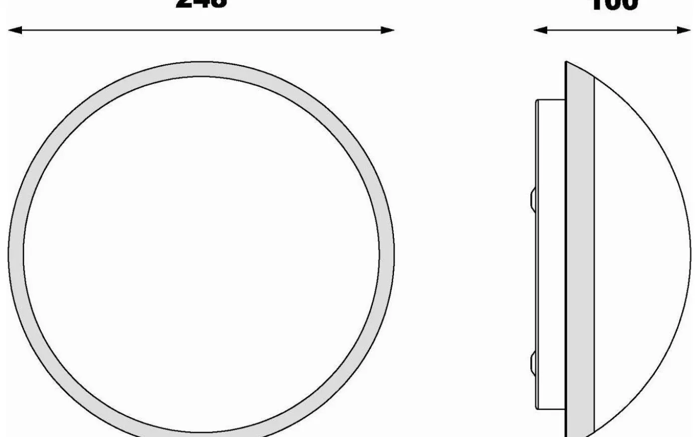 Siracusa plafond för badrum. Vit glaskupol och kromad metallkant runt skärmen. 12W LED integrerat som ger ett bekvämt varmt vitt ljus med 900 lumen, vilket motsvarar cirka 60W traditionell glödlampa. Lampan monteras med skruvar i taket och strömanslutning med fast montering.