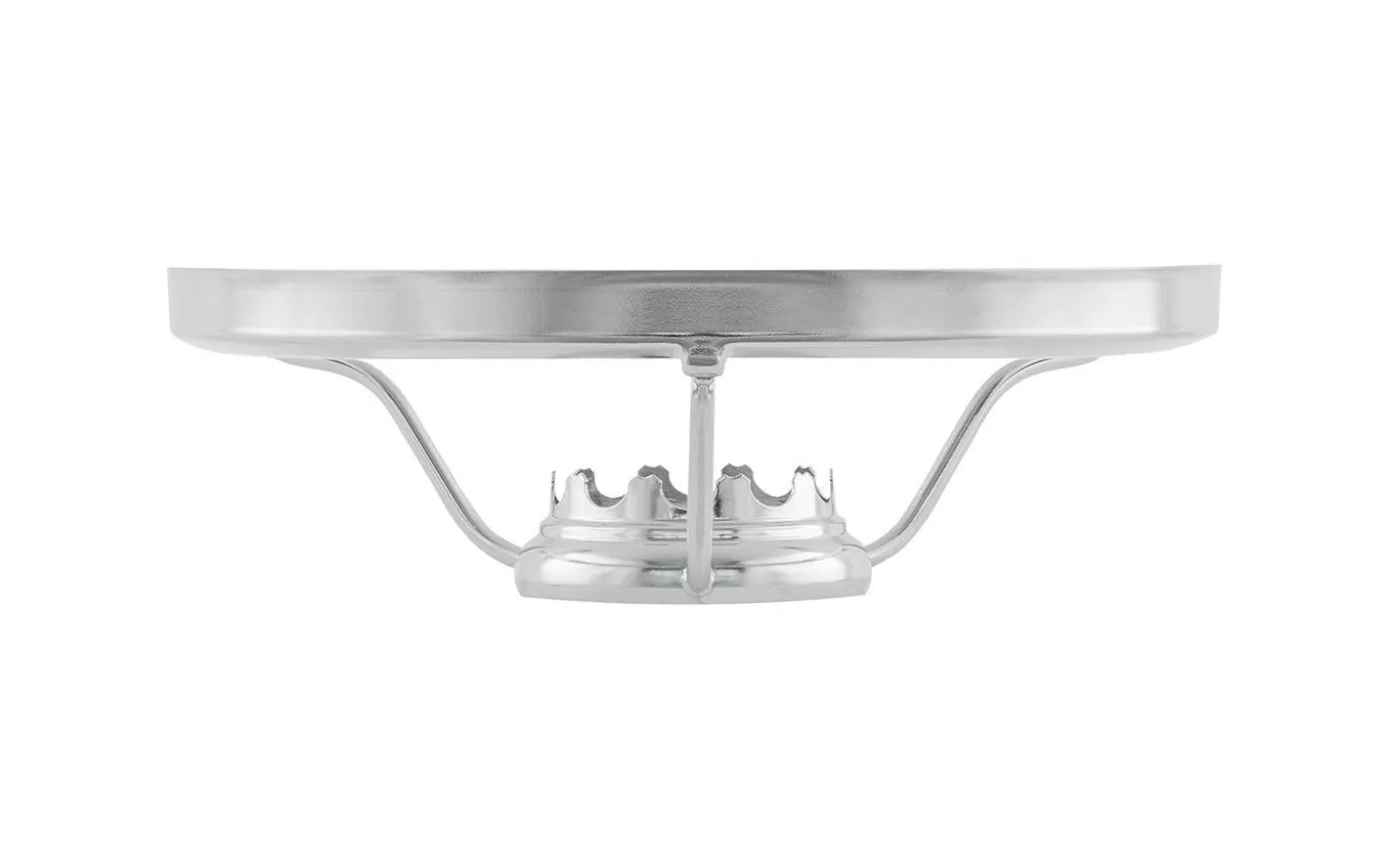 Skärmring avsedd för att kunna sätta en 155 mm fotogenkupa på en 10”’ rundbrännare. Ringens inre diameter är något vid för att kunna passa olika fabrikat, vilket gör att den inte klämmer åt runt galleriet utan endast vilar på gallerikragen. Önskas en helt fast ring – vilket kan vara bra om lampan är tänkt att ofta flyttas på – är en brännare med fastlödd ring att föredra. Förnicklad mässing ca 41.5 mm 155 mm