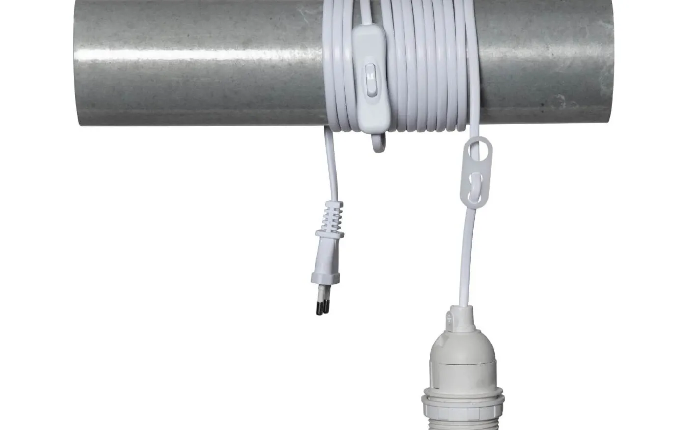 Komplett sladdställ där sladden är 3,5m med brytare. Kan regleras kortare med hjälp av trehåls-hängaren efter behov. Kombinera upphänget med en snygg ljuskälla. Kan användas till skärmar och pappersstjärnor.