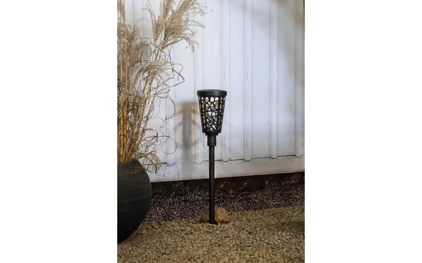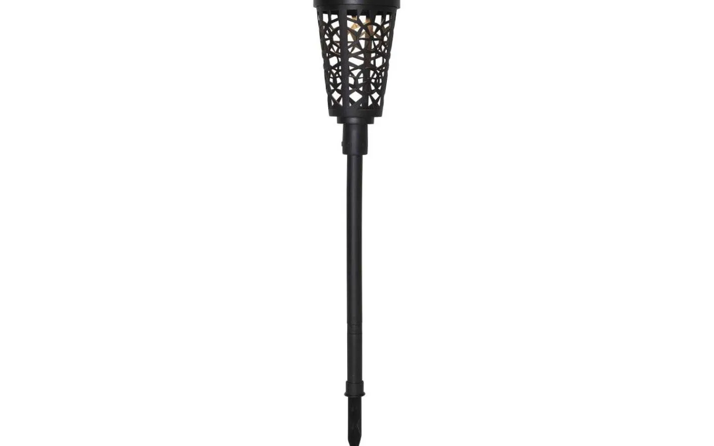 Sinnia Solcellslampa, från välkända Star Trading, är en svart solcellslampa med ett lykthus med ett vackert utskuret mönster. I lykthuset sitter en LED-lampa som lyser i dekorativt varmvitt sken. Markspettet gör det enkelt för dig att trycka ner solcellslampan i jorden och blir en fin dekorationsbelysning att placera vid uteplatsen eller längs gångstigen.