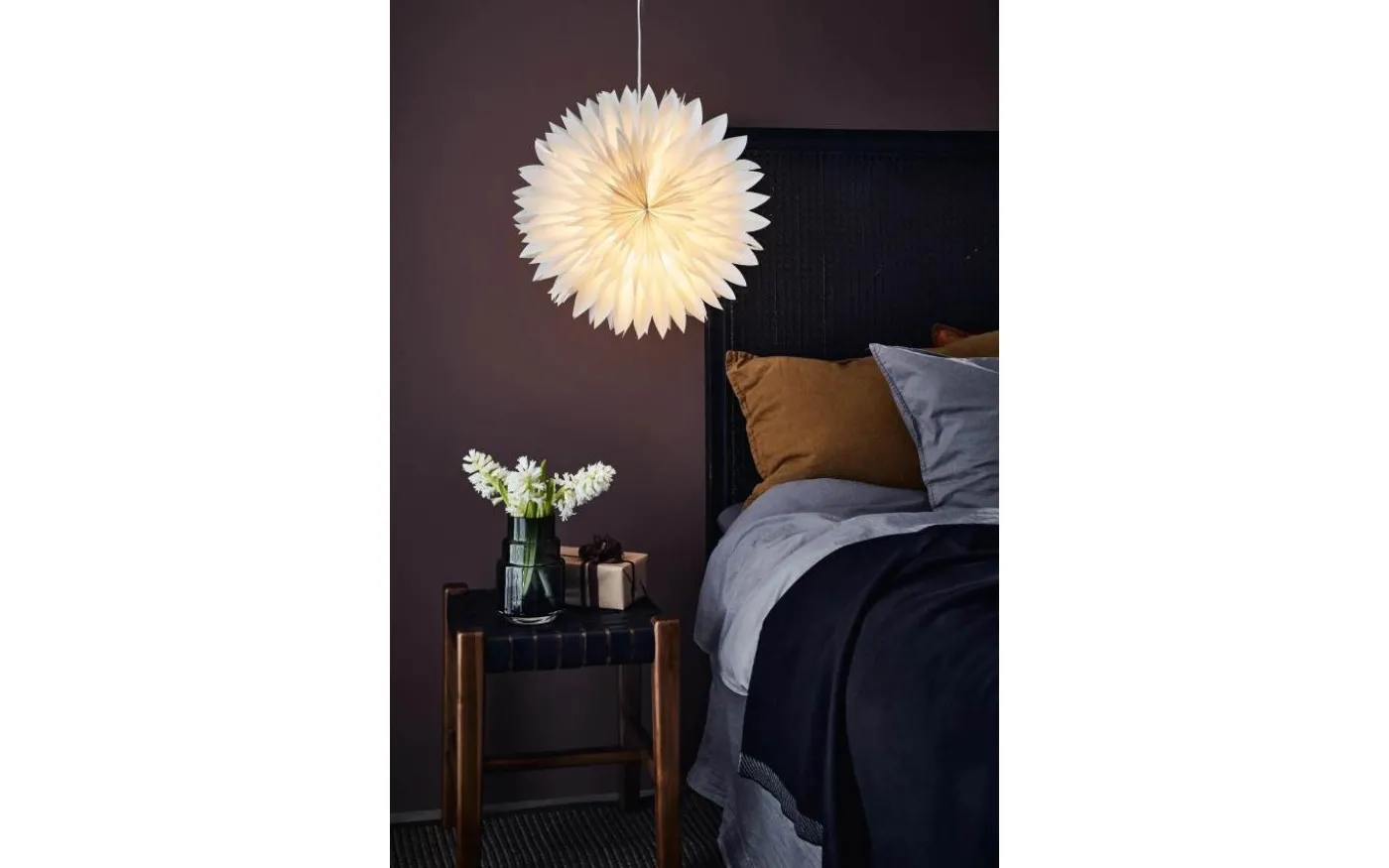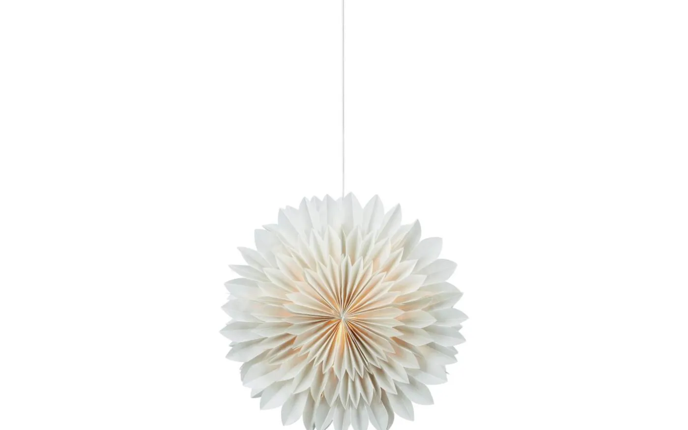 Den grå pappstjärnan släpper genom ett fint ljusflöde och Solina levereras med 3,5 meter vit kabel med strömbrytare och stickkontakt för vägguttag.