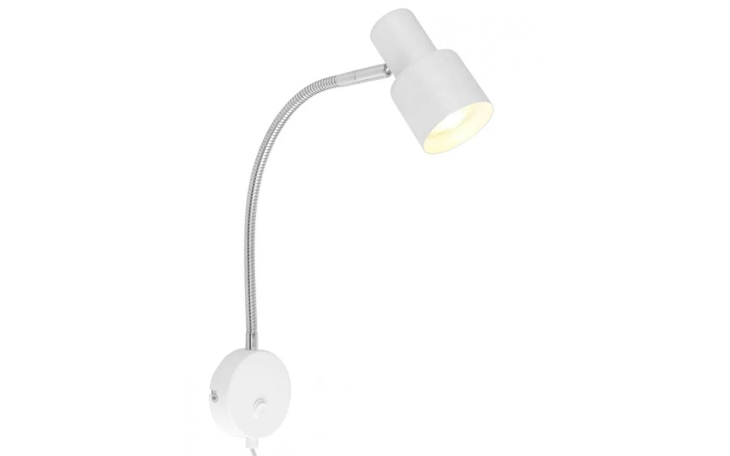 Flexarmen gör att du enkelt kan rikta och vinkla ljuset efter eget behov. Tänder och släcker gör du enkelt på strömbrytaren som är placerad på väggfästet. Lampan levereras med 1,9 meter lång sladd med stickkontakt för vägguttag.