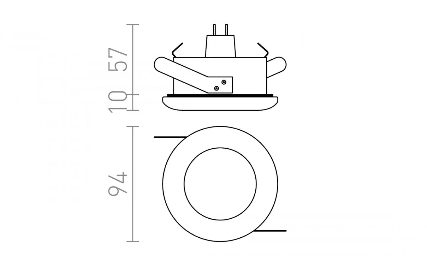 Infälld lampa för våtutrymmen med en täckskiva av satinerat glas. Transformator tillkommer.