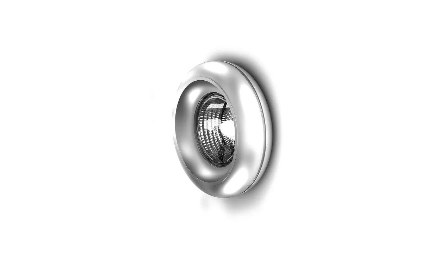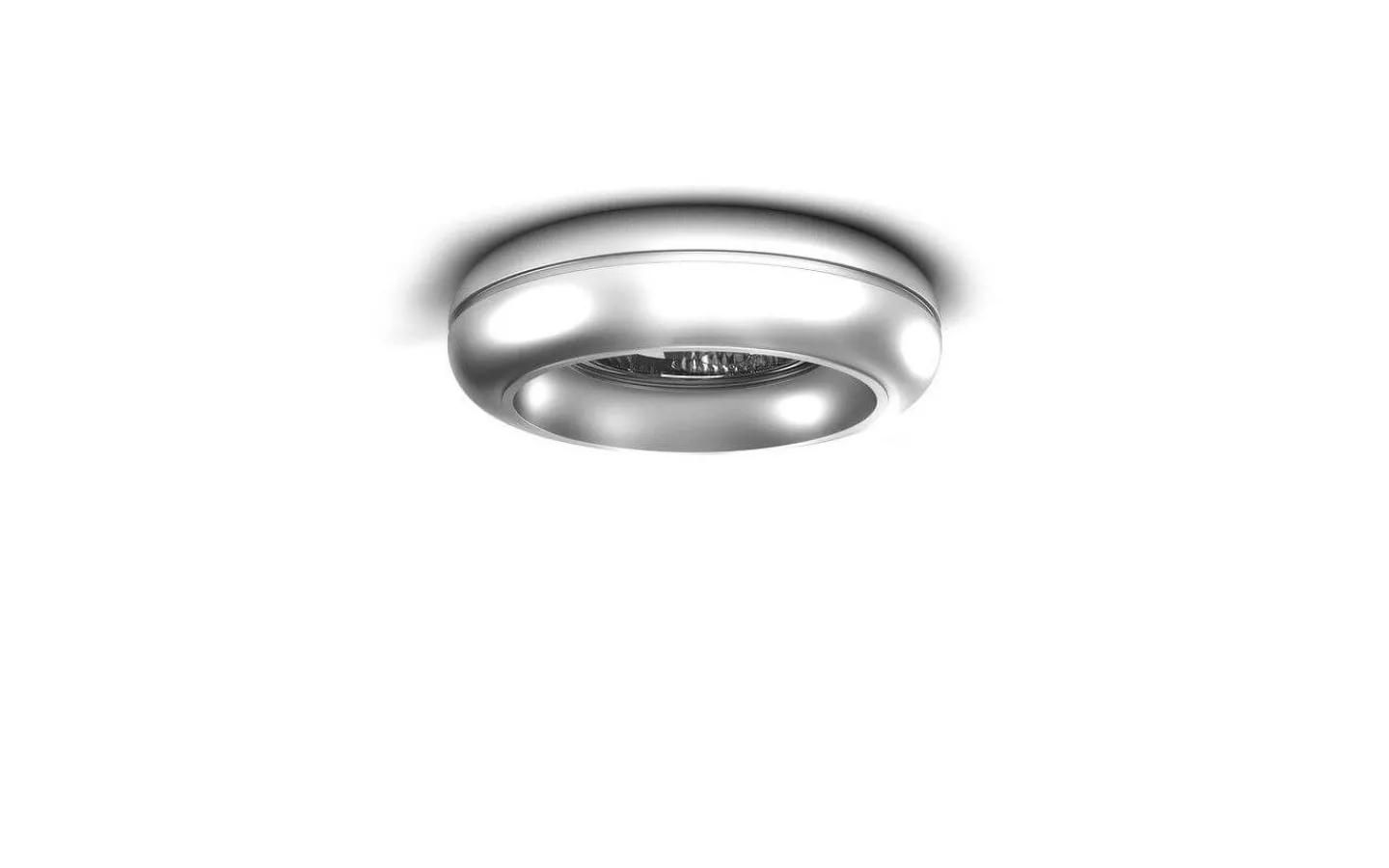 Infälld spot med en böjd ram i krom för en GU10 ljuskälla. Endast för gipsväggar.