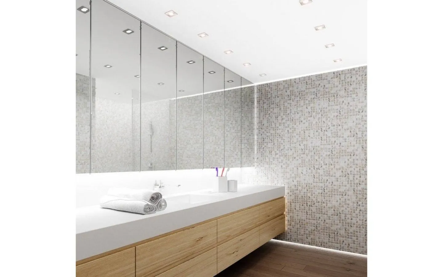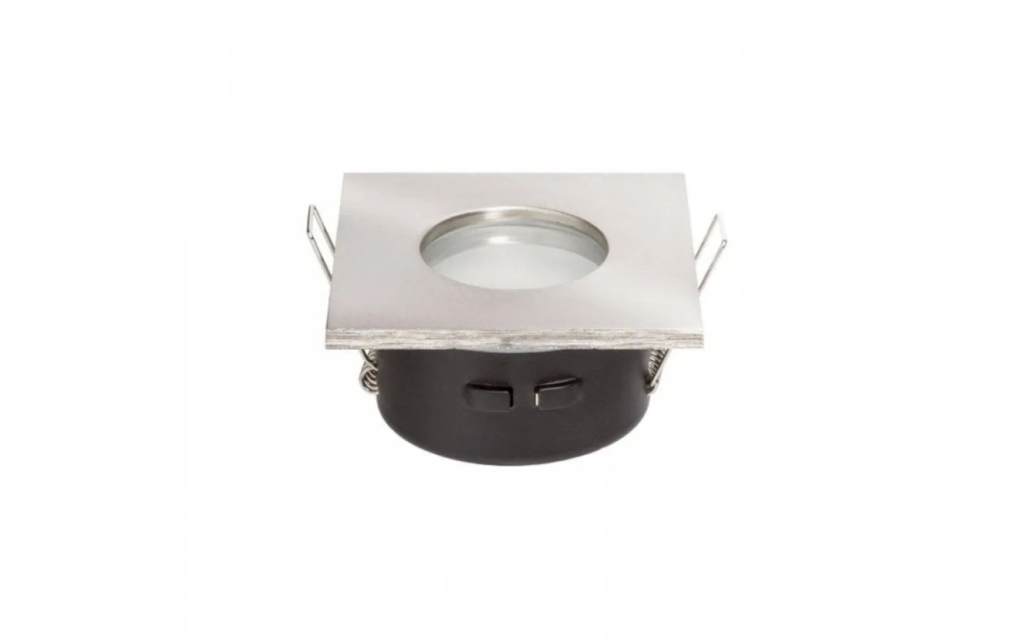 Infälld lampa i metall lämplig i våta miljöer.