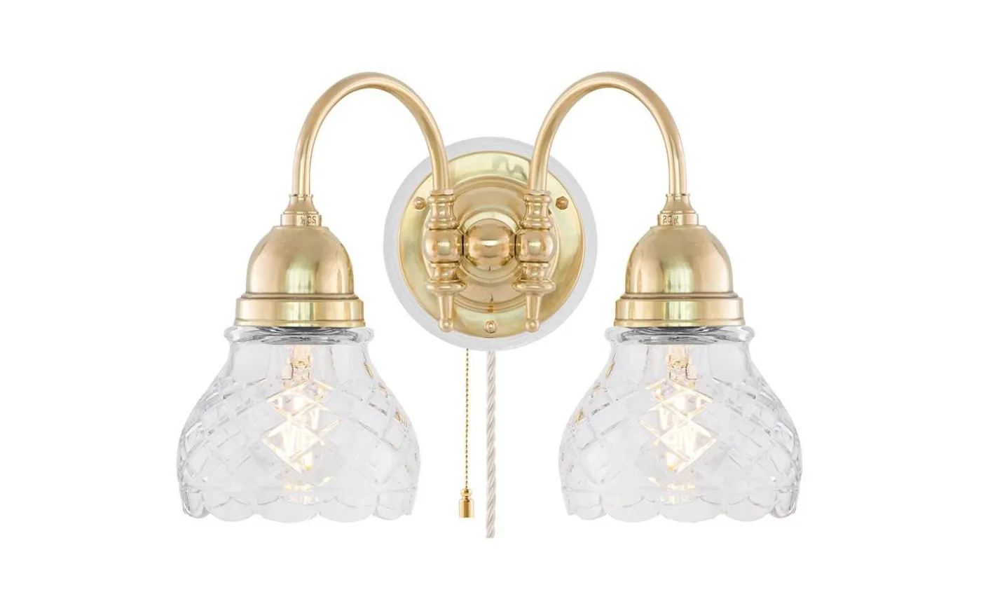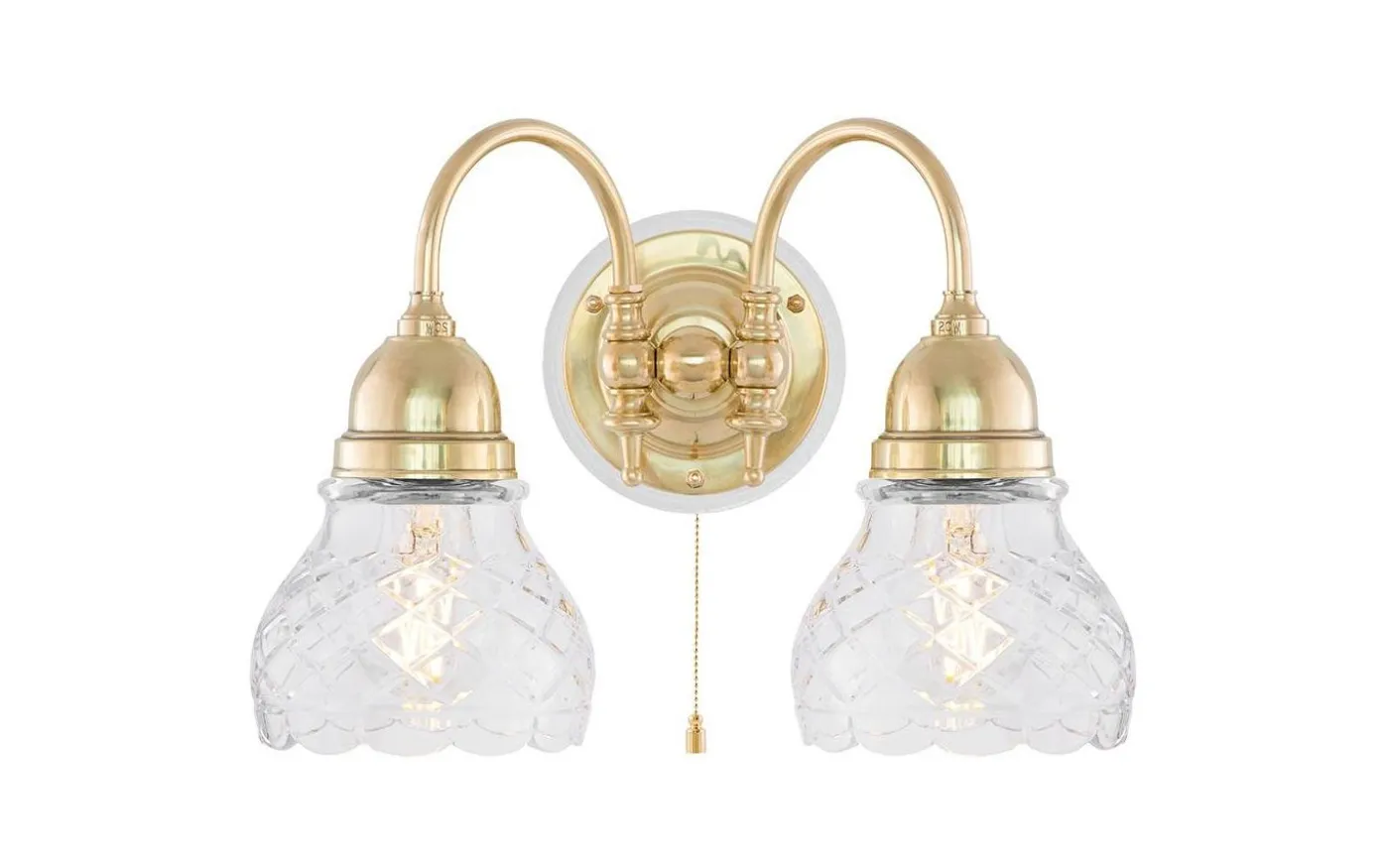 Klassisk väggarmatur tillverkad helt i mässing. Främst avsedd som allmän- eller stämningsbelysning i exempelvis en korridor eller sittande ovanför eller på var sin sida om en spegel eller tavla. För fast montage. Kan kompletteras med knoppledning och stickkontakt för vanligt vägguttag.