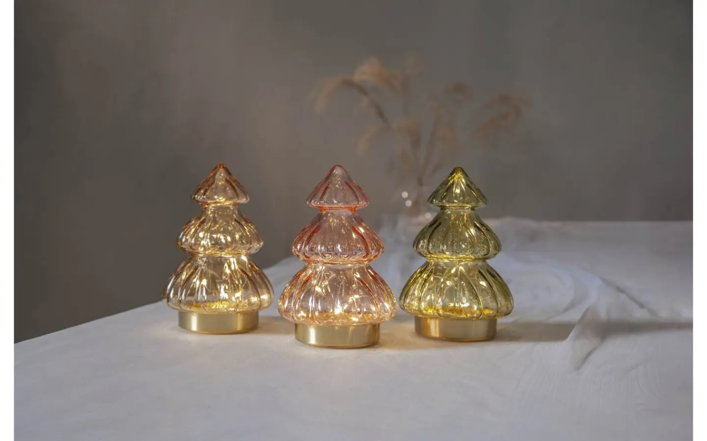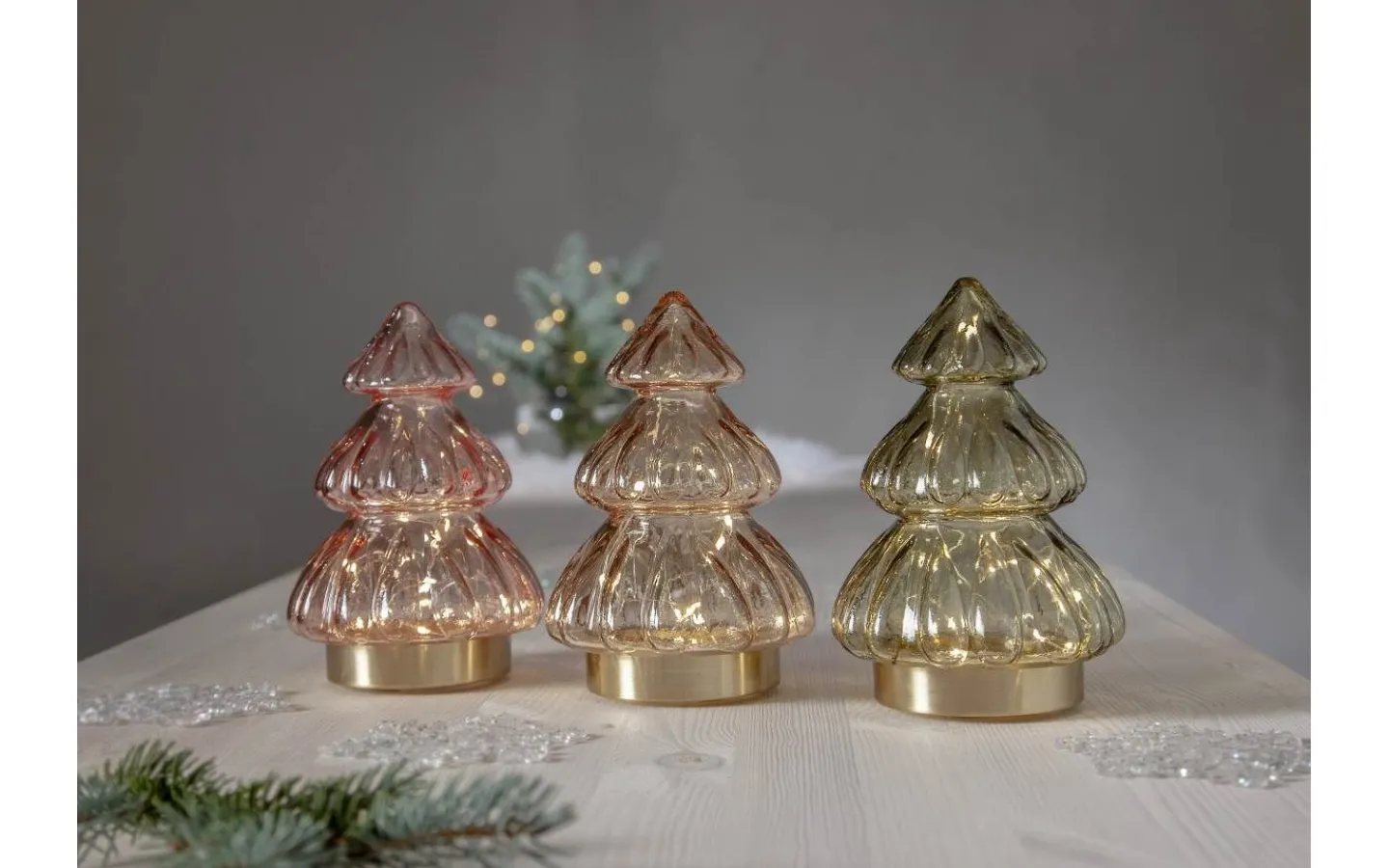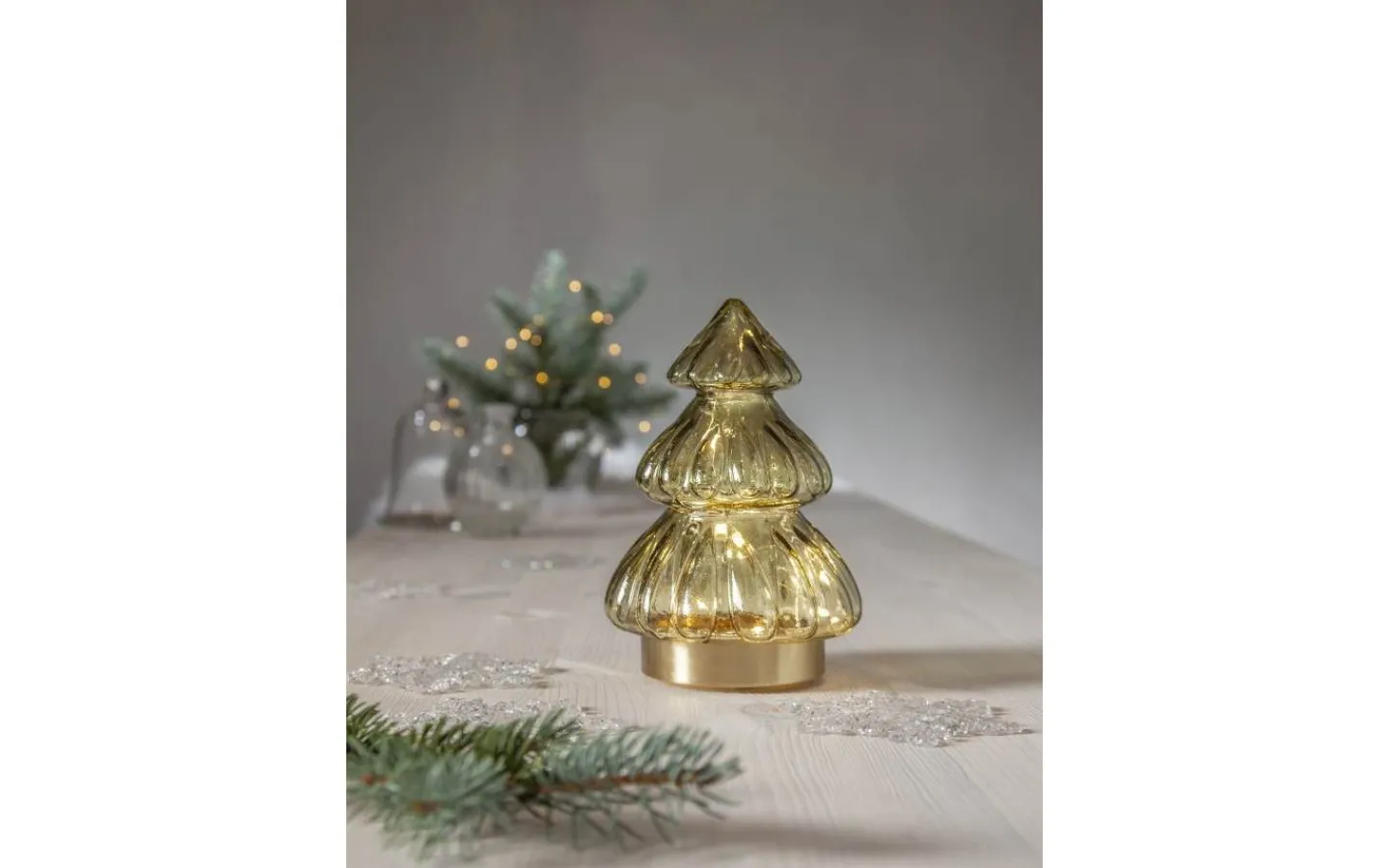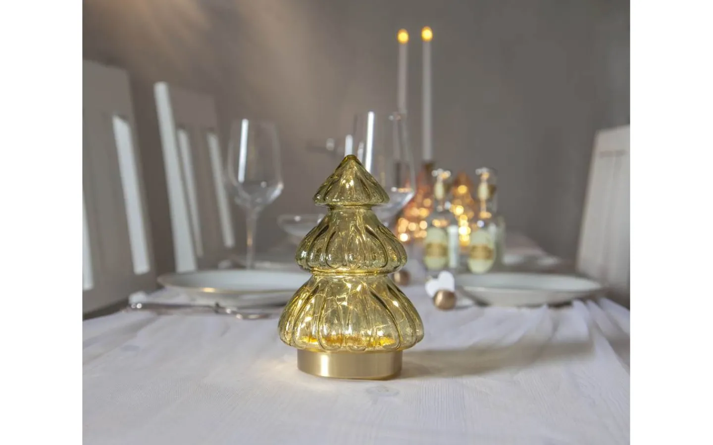 Abete batteridriven bordsdekoration från Star Trading har en form likt en gran. Tillverkad i färgat glas med en guldfärgad metallfot.