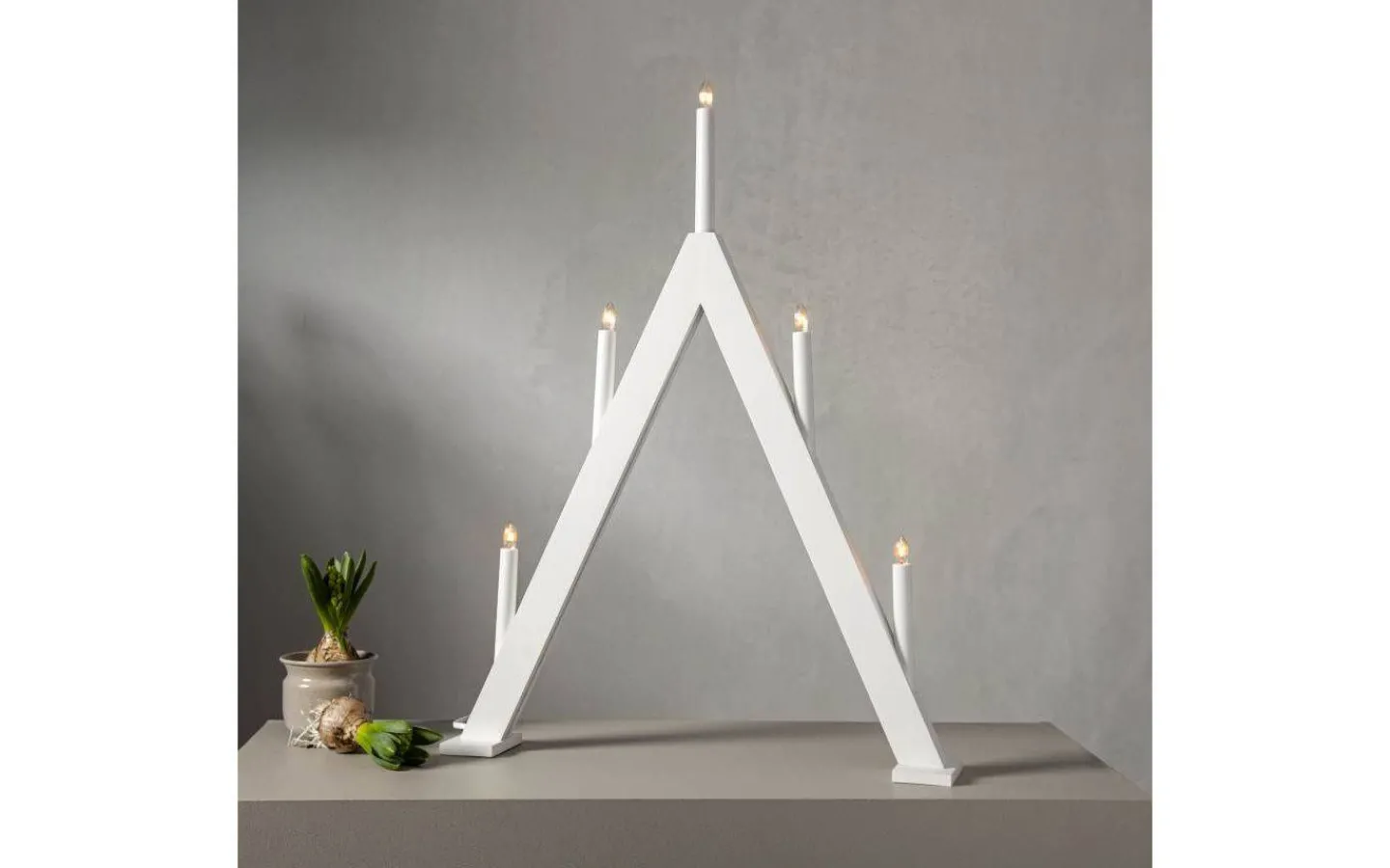 Albo är en elegant 5-armad adventsljusstake från välkända Star Trading. Ljusstaken är tillverkad i trä med en vit finish.