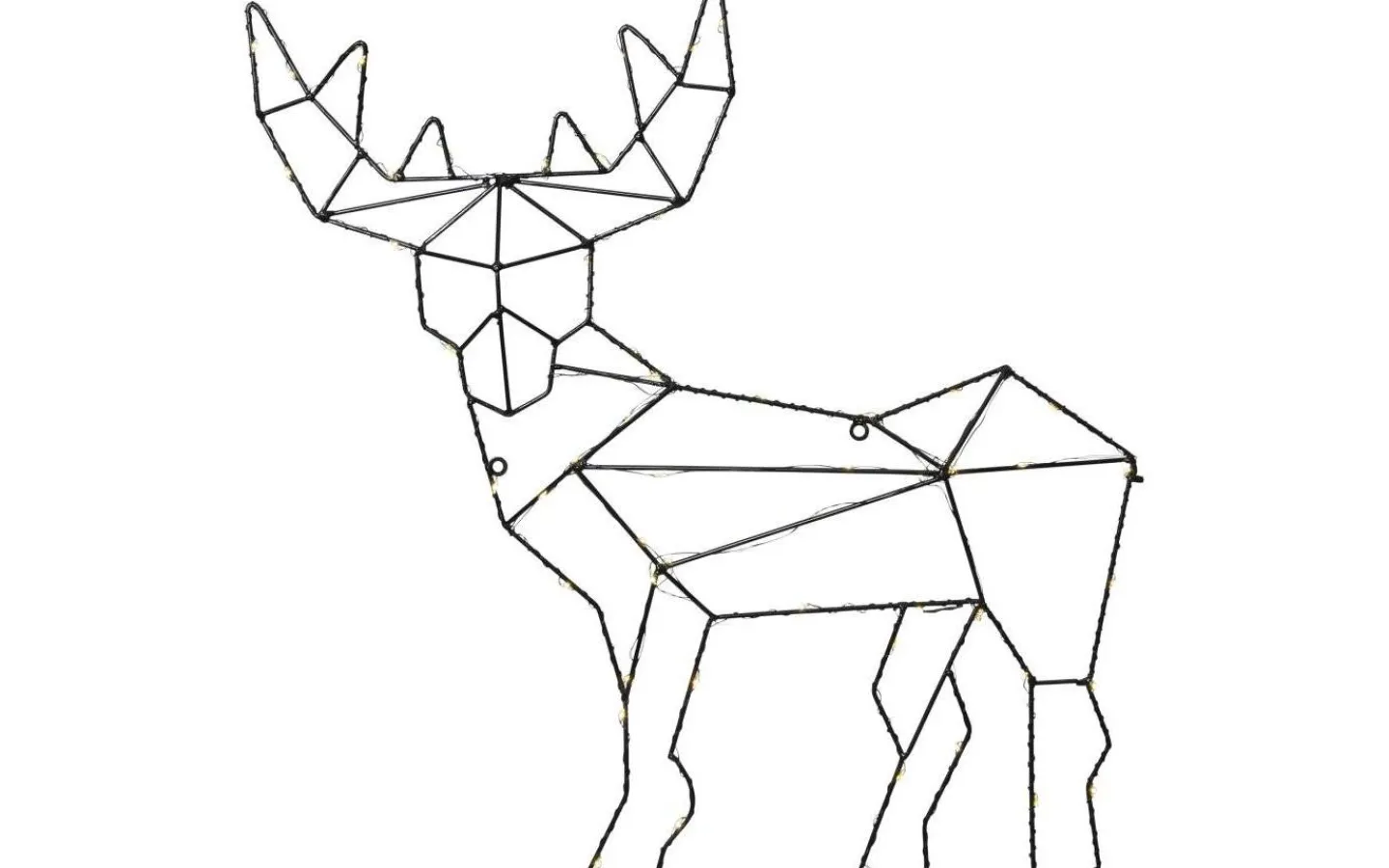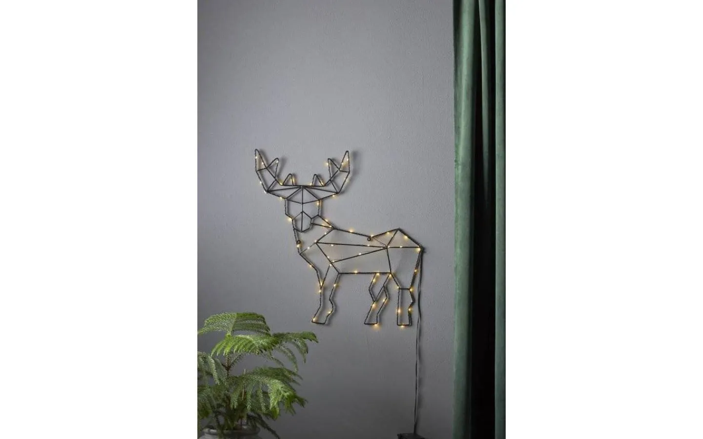 Juldekoration i form av en hjort som lyser i ett vacker varmvitt sken. Du fäster den genom de små hålen som är placerade på hjortens kropp. Men man kan också välja att knyta fast ett snöre och hänga upp den i exempelvis fönstret.