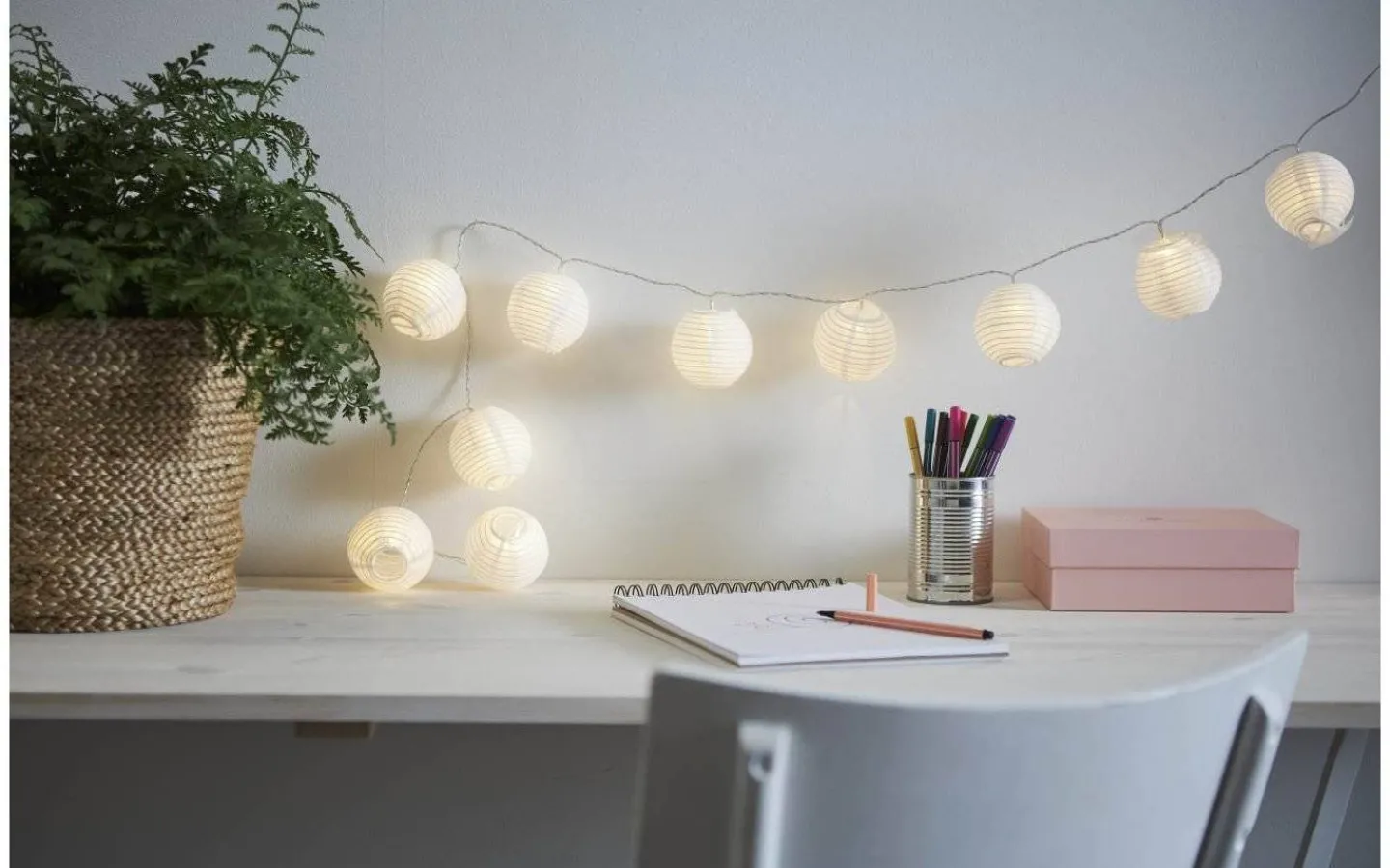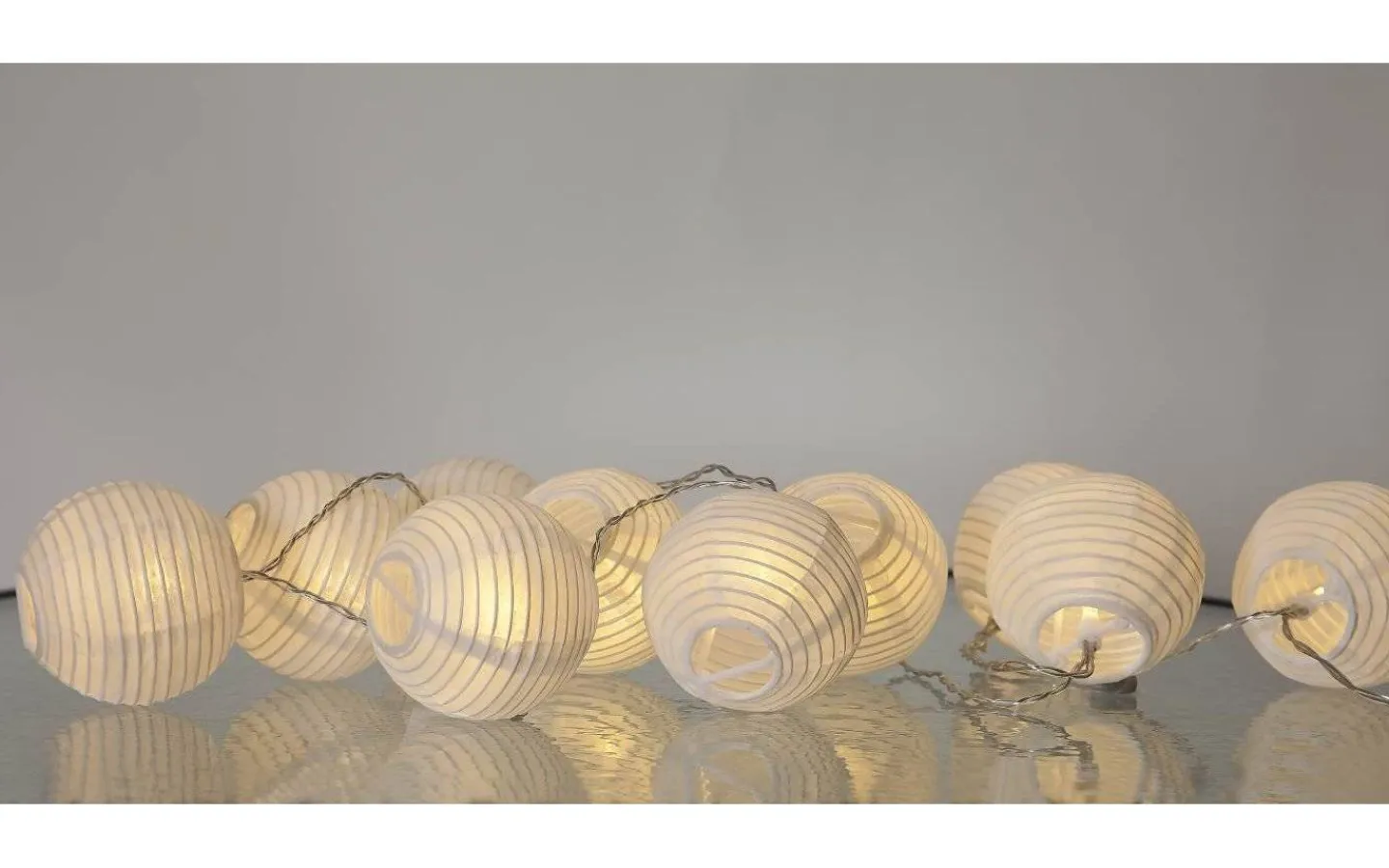 Fin ljusslinga med transparent kabel och 10 risbollar i härliga färger. Dekorera barnrummet eller vardagsrummet med denna fina ljusslinga och få en mysig dekorationsbelysning när mörkret faller på!
