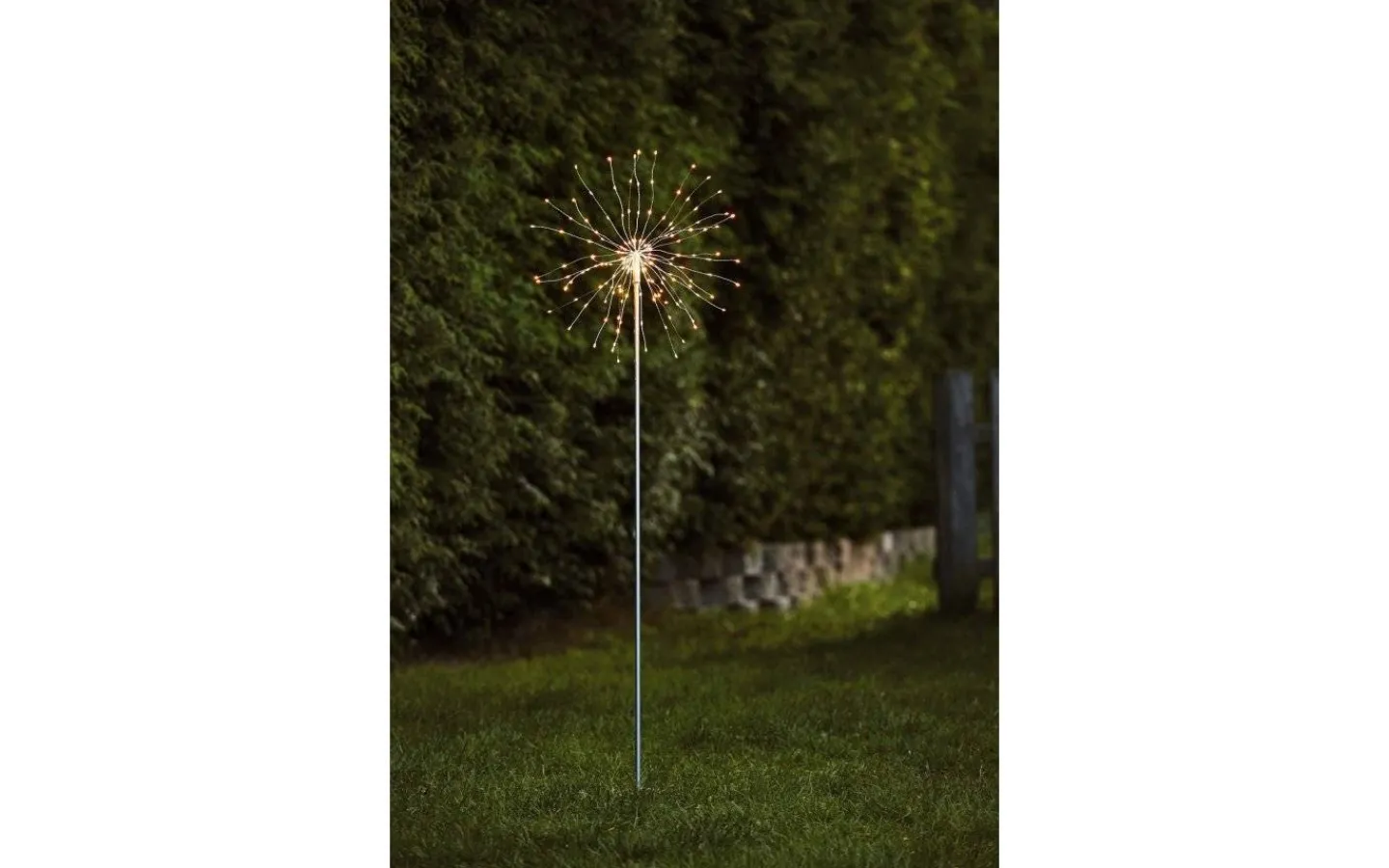 Härlig utomhusdekoration med spröt i silver, från Star Trading. När alla spröt är fullt utvecklade påminner de om fyrverkerier och därför har den fått sitt namn Firework. Denna utomhusdekoration har 1 styck spjut med 5 meters anslutningskabel, och små fina LED-lampor som lyser i ett mysigt, varmvitt ljussken.