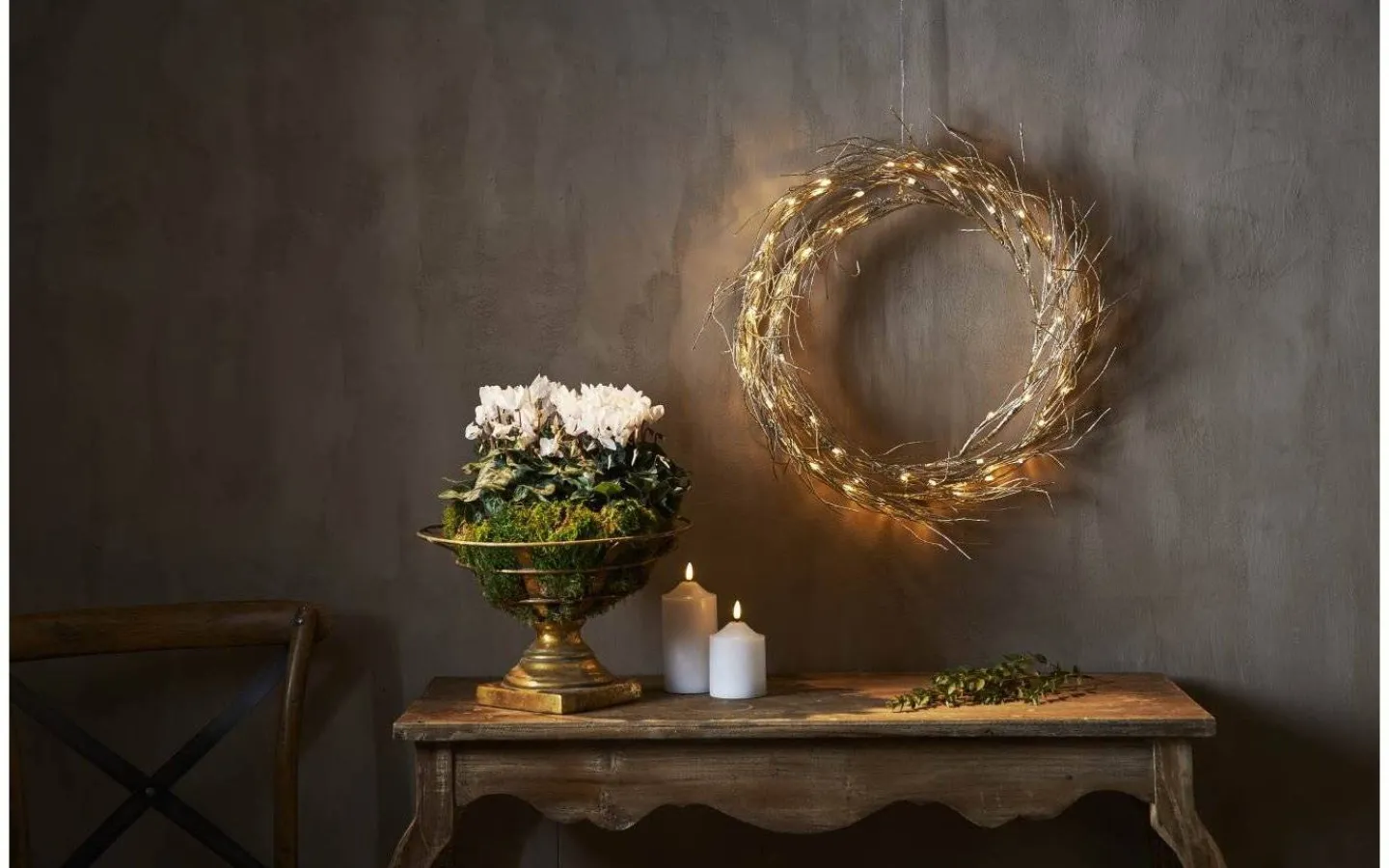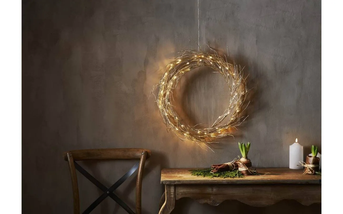Fizzy Krans, från välkända Star Trading, är en vacker guldfärgad krans med två träliknande ringar med kvistar. Det är 50 stycken små ljuspunkter utplacerade på ringarna som lyser i ett härligt varmvitt sken. Häng på insidan av dörren, längs väggen eller i fönstret för att skapa en stämingsfull miljö! Levereras med en 5 meter lång anslutningskabel med transformator och stickkontakt för vägguttag.