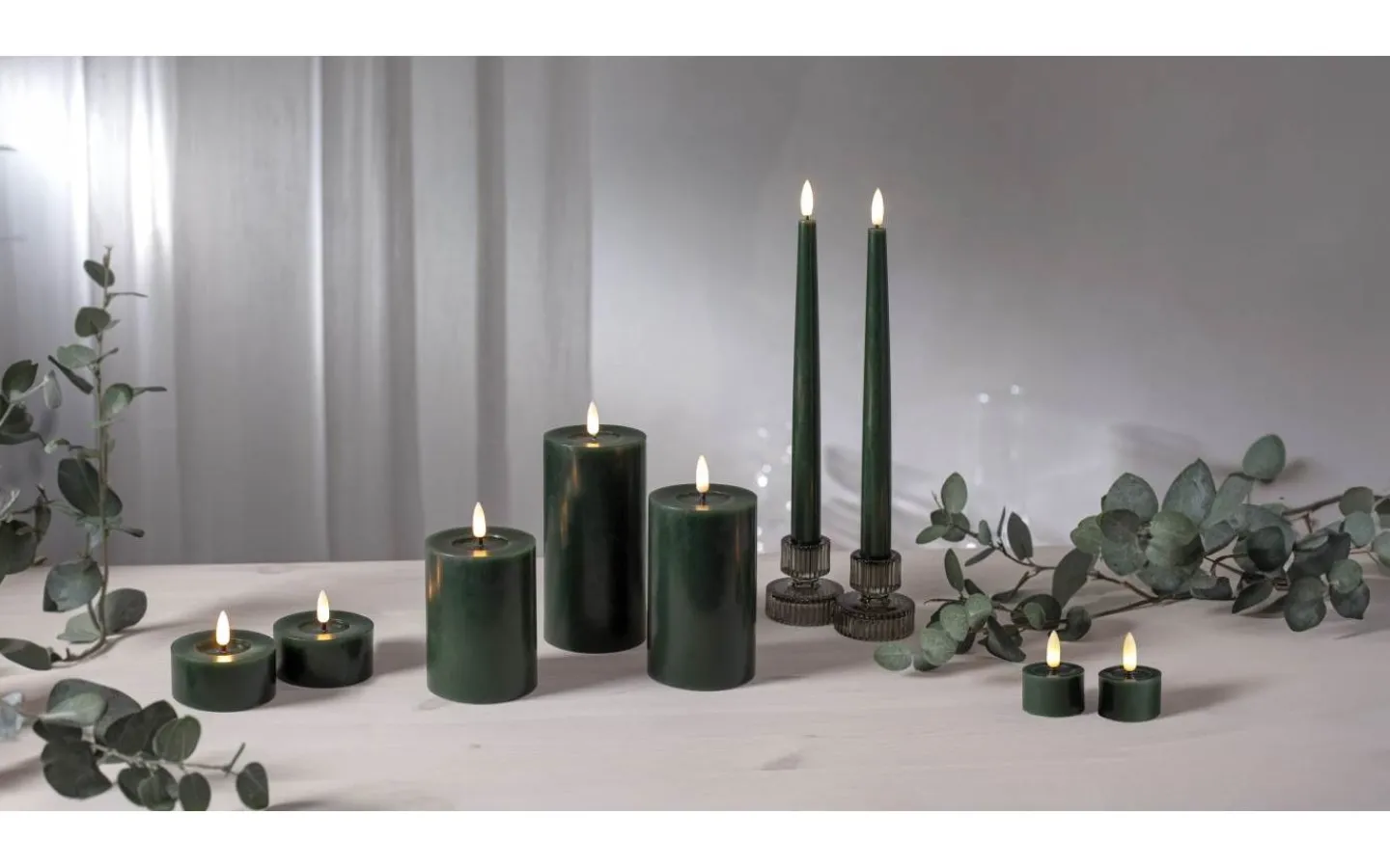 Detta är ett 2-pack med ljus som är 28,5 cm långa samt en fjärrkontroll som gör att du enkelt kan tända och släcka ljusen. Fjärrkontrollen har även en knapp för timerfunktion, trycker du på denna så lyser ljusen i 6 timmar och tänds igen samma tidpunkt dagen efter. Dessa ljus är 2,1 cm i diameter över bredaste punkten.