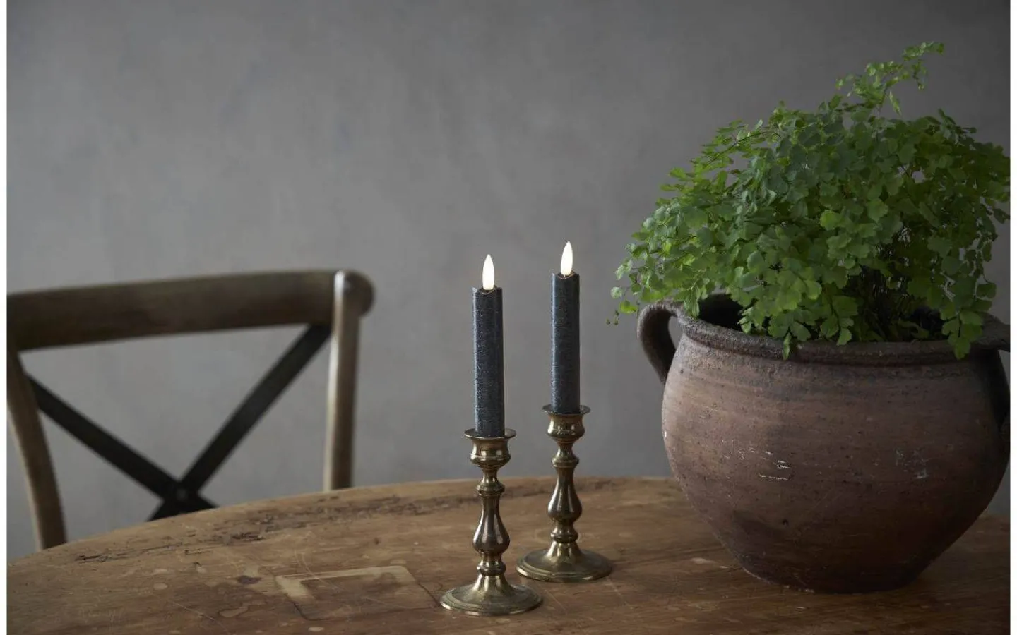 Dessa fina antikljus har en svart veke med en rund 3D-låga som nästintill ser ut som en riktig låga. Dessa batteridrivna ljus lyser i ett mysigt varmvitt ljussken och lågan skiftar i ljusstyrka för att avge ett vackert och verklighetstroget intryck.