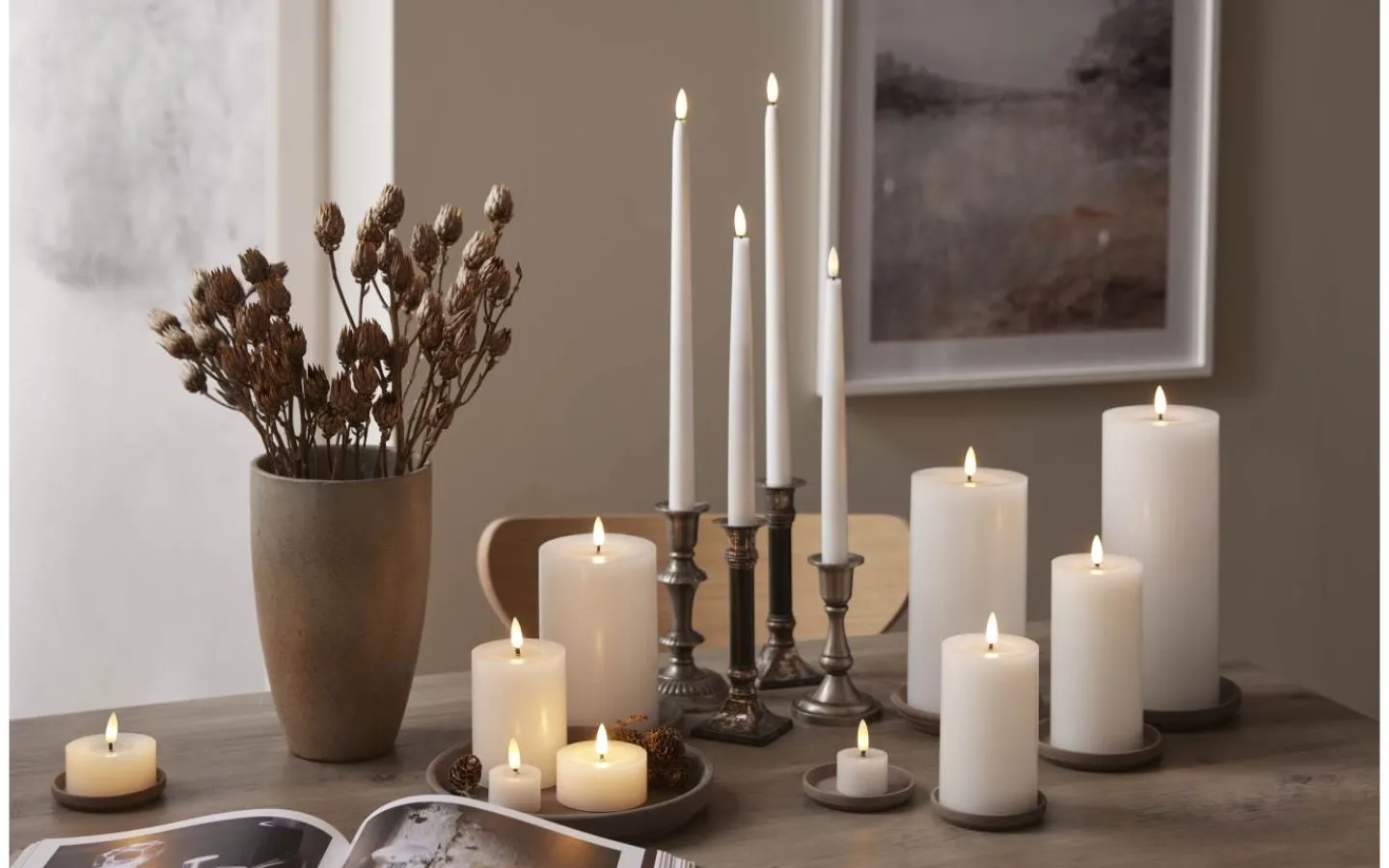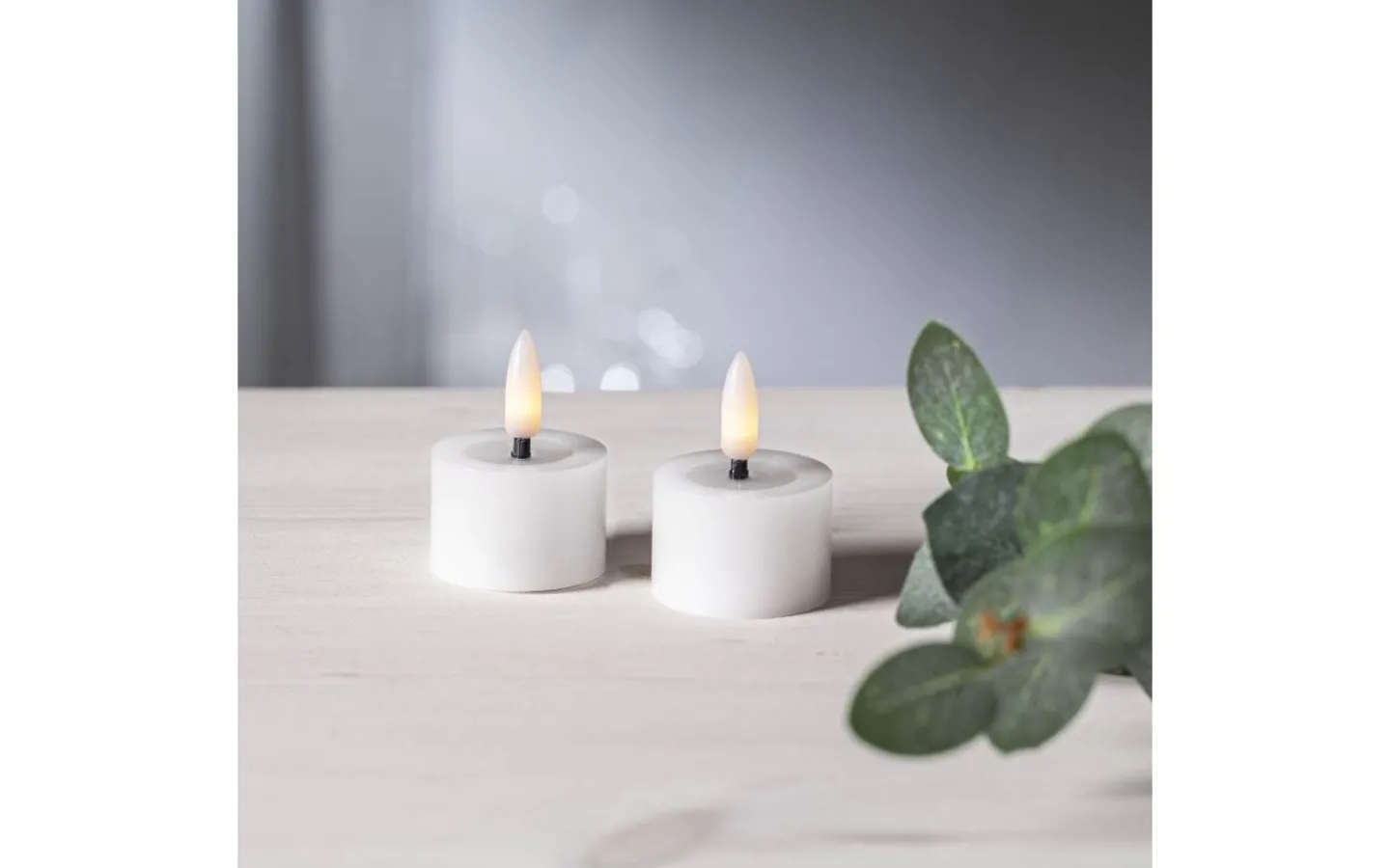 Flamme Flow värmeljus från Star Trading är ett 2-pack batteridrivna värmeljus i vax med en nersänkt blank yta som gör att det liknar flytande vax. Den naturtrogna runda 3D lågan är placerad på en svart veke och lyser i ett härligt varmvitt sken. Ljuslågan skiftar i ljusstyrka för att avge ett extra verklighetstroget intryck.