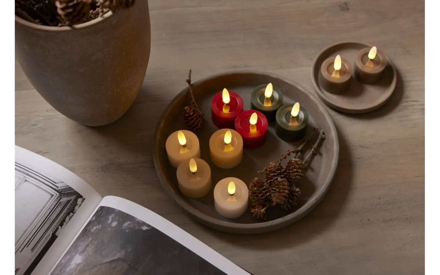 Varje värmeljus drivs av CR2032-batterier, dessa ingår. Önskar du köpa till extra batterier hittar du dessa under ”Tillbehör”.
