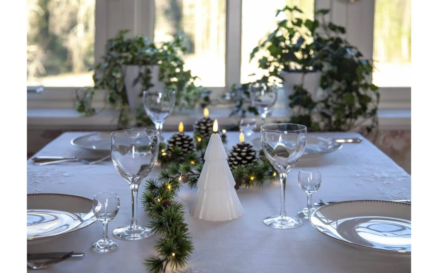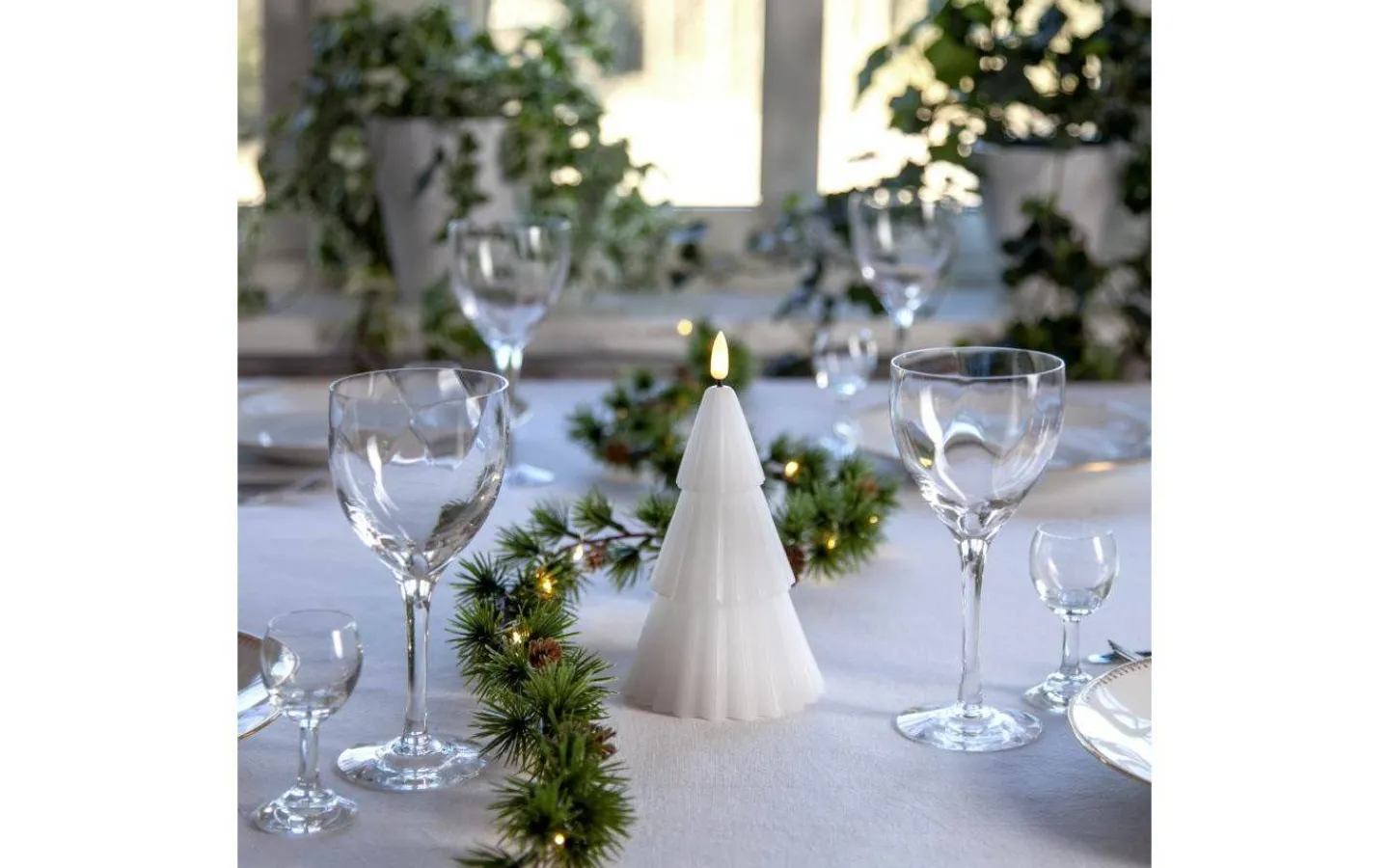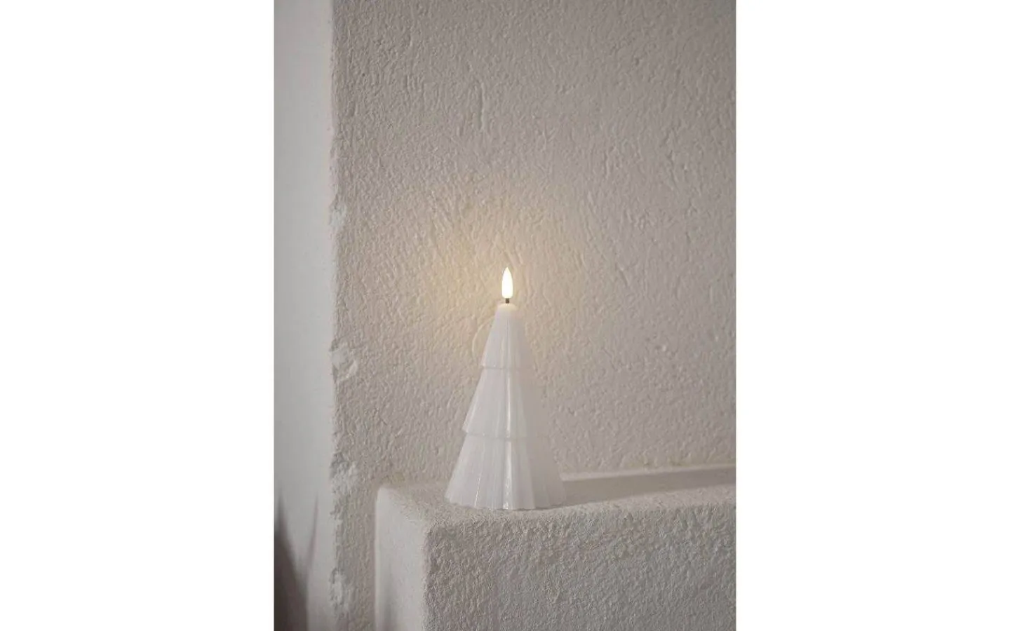 Flamme Grany är ett dekorativt batteridrivet blockljus från Star Trading i form av en stiliserad gran. Ljuset har en blank nedsänkning under lågan som ska avspegla flytande vax vilket gör ljuset än mer naturtroget.