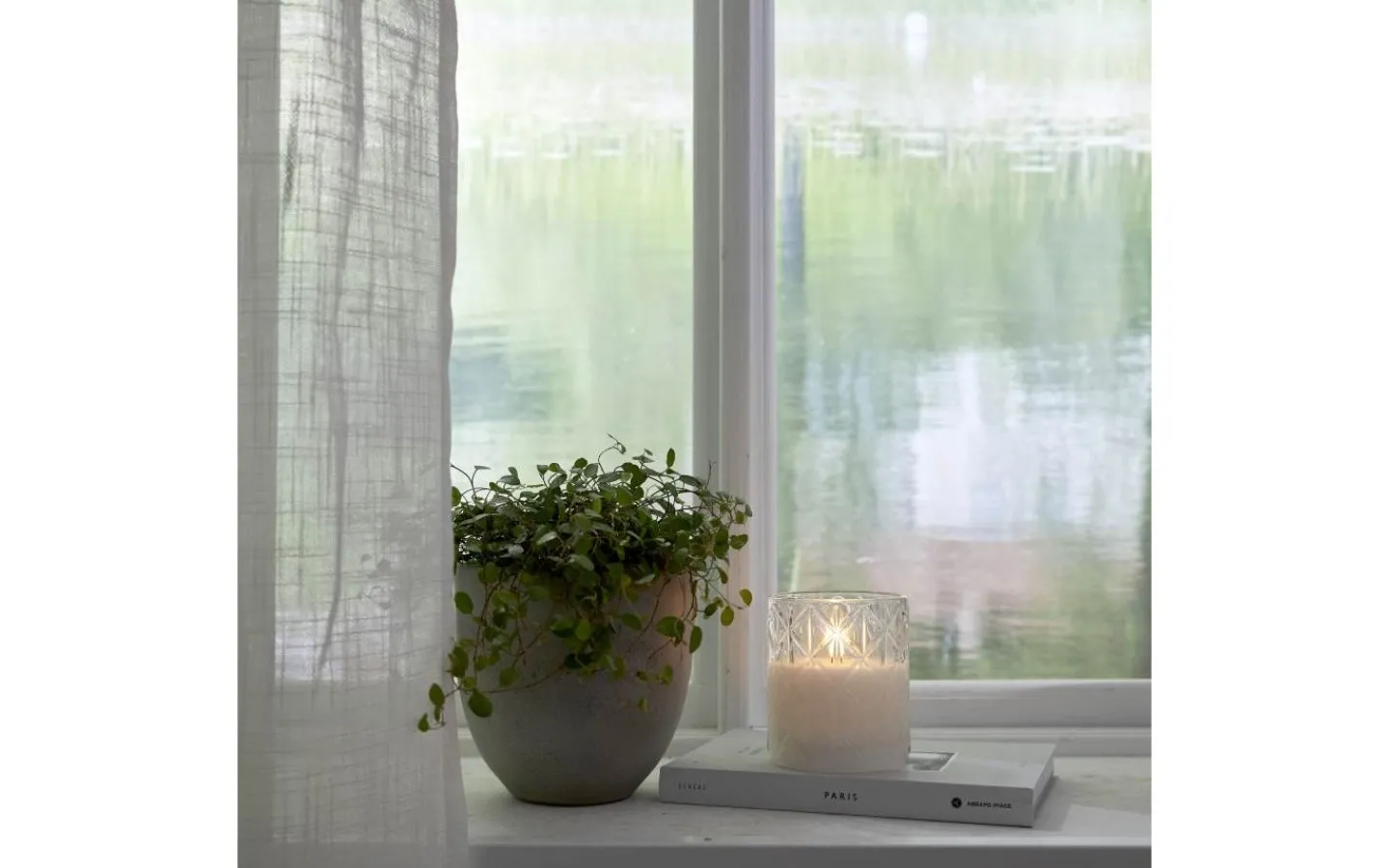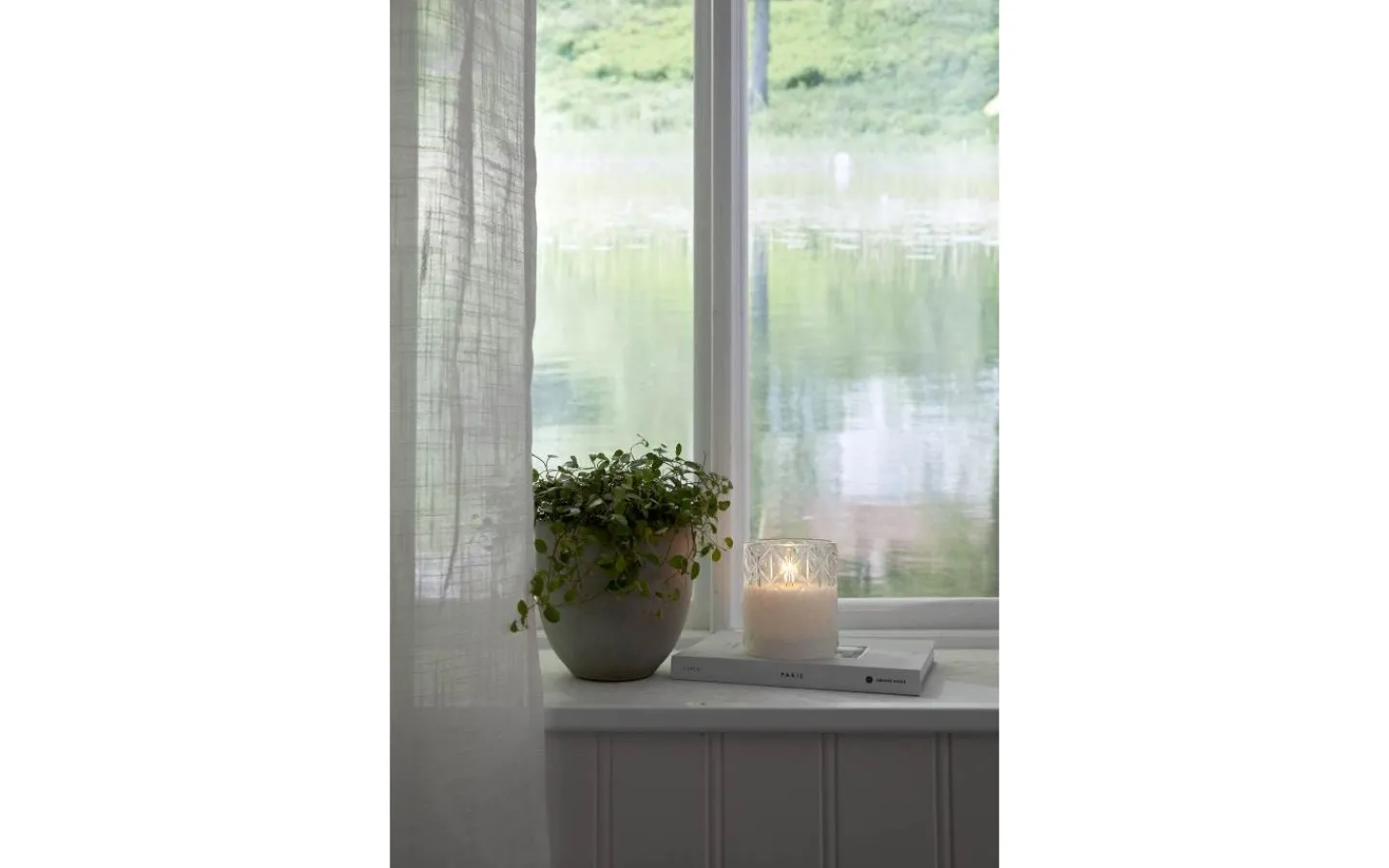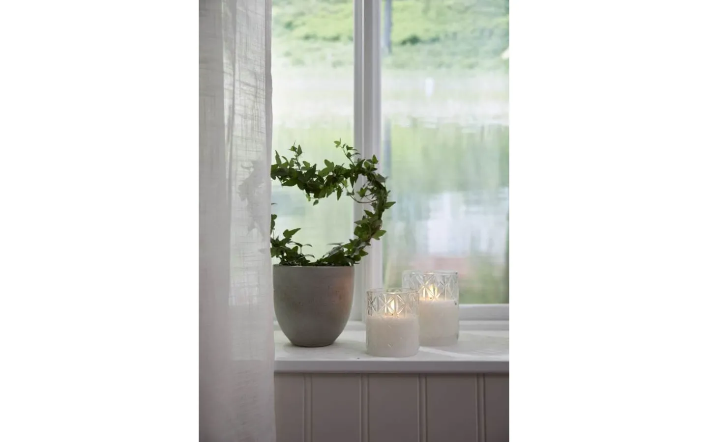 Ljuset har inbyggd timerfunktion vilket innebär att du tänder en gång vid önskad tidpunkt sedan lyser ljuset i sex timmar och tänds igen vid samma tidpunkt dagen efter.