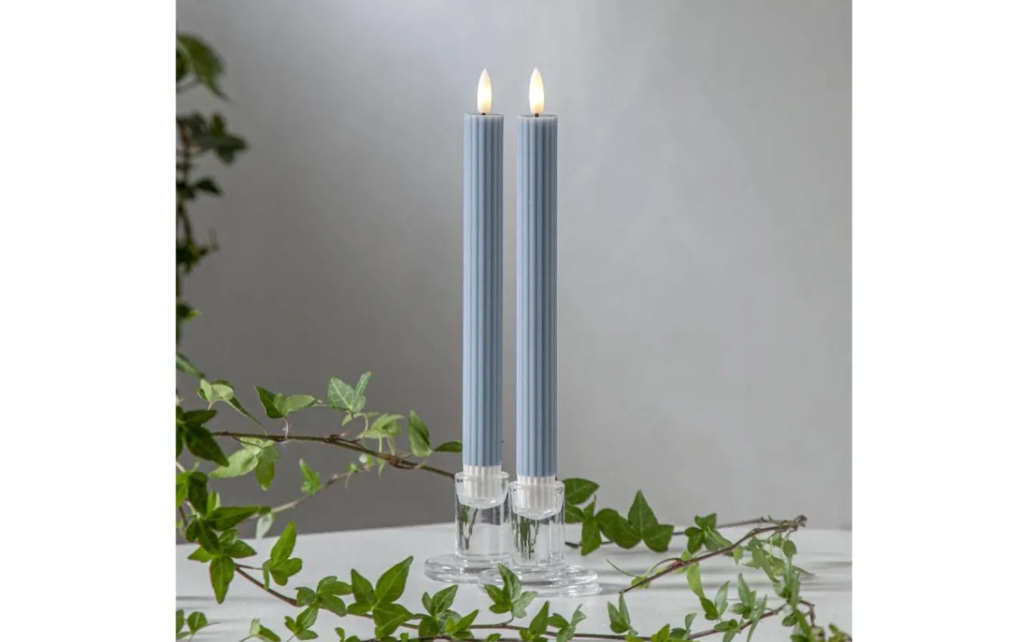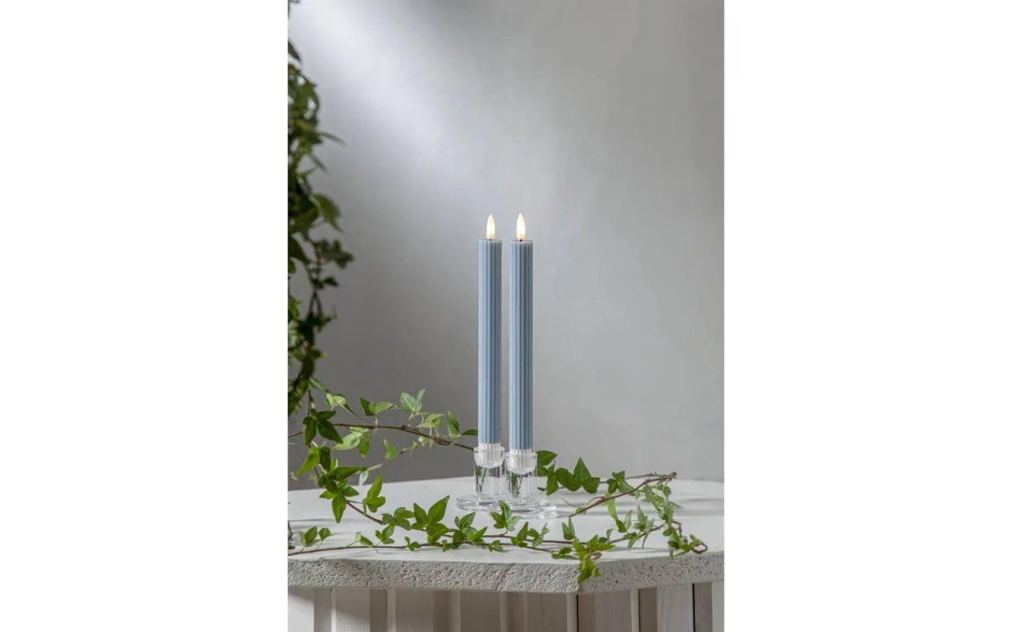 Flamme Stripe från Star Trading är ett härligt 2-pack antikljus i räfflat vax. Den naturtrogna runda 3D lågan är placerad på en svart veke och lyser i ett härligt varmvitt sken. Ljuslågan skiftar i ljusstyrka för att avge ett extra verklighetstroget intryck.