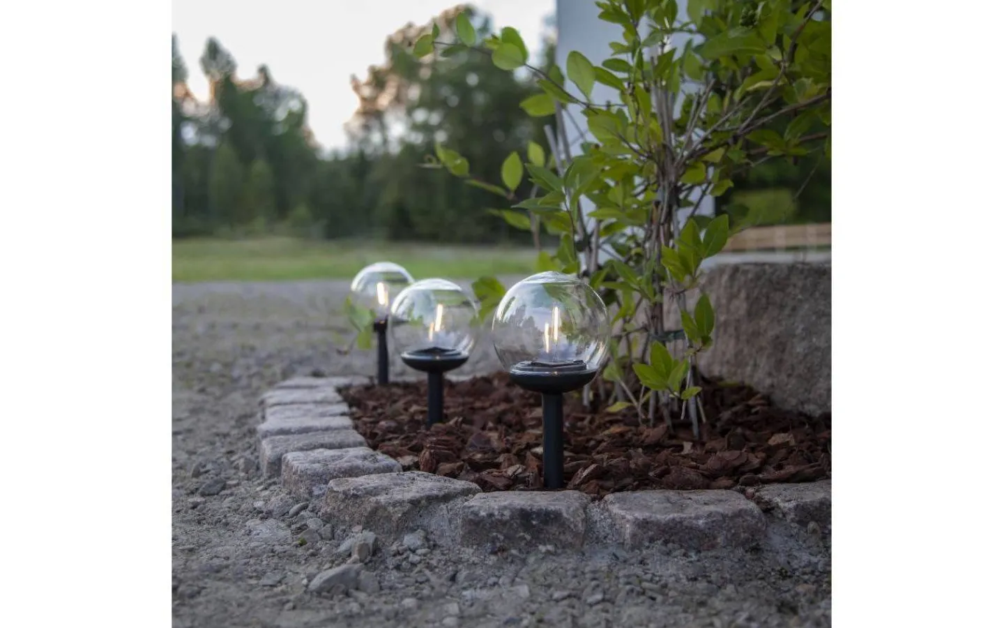 Denna modell av solcellslampan Globe bestå av ett 3-pack transparenta miniklot på pinne. Varje klot är 10 cm i diameter och har en total höjd på 25 cm. Globe passar perfekt för att lysa upp blomlådor på balkongen, bland blommor och buskar i rabatten eller som belysning längs en trädgårdsgång. Inuti klotet finns en inbyggd LED-lampa som avger ett mysigt varmvitt ljussken vid mörker.