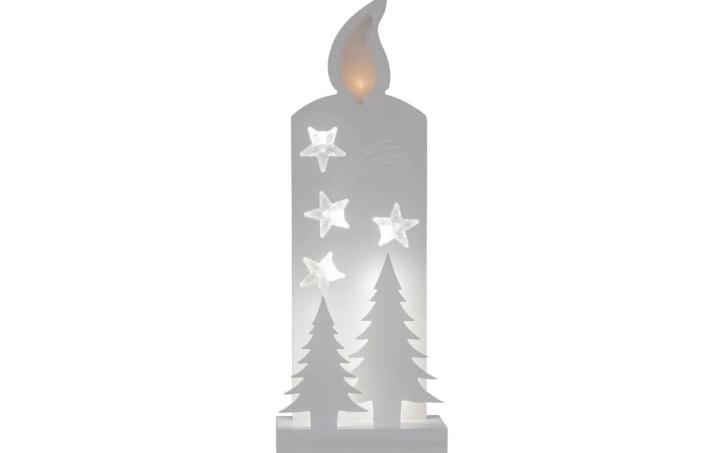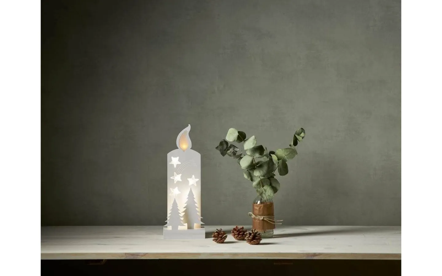 Grandy Siluett Blockljus, från Star Trading, är en 36cm hög, vacker bordsdekoration med silhuetter av granar och ett stort blockljus. Med vackra ljuspunkter som lyser upp blockljusets låga, stjärnorna och bakom granarna blir denna dekoration något extra till jul. Placera på sidobordet, i fönsterkarmen eller varför inte på nattduksbordet under vintertid för att skapa en härlig julkänsla.