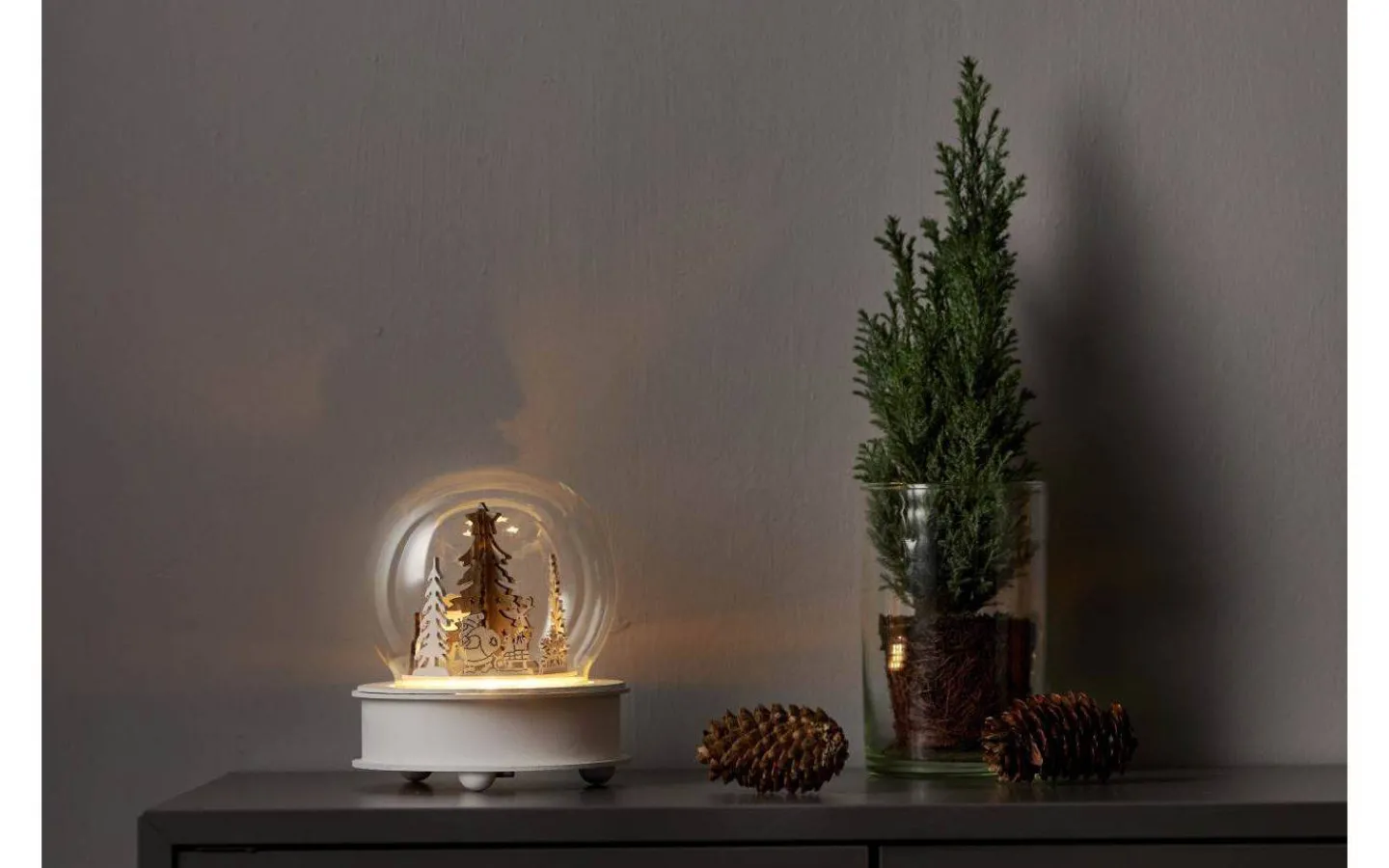 Grauberg batteridriven dekoration från Star Trading är en detaljrik, laserskuren speldosa med glaskula. Det vackert utskurna landskapet både lyser upp och roterar när den är påslagen. Vrider man på vredet så spelar den även vacker melodi.