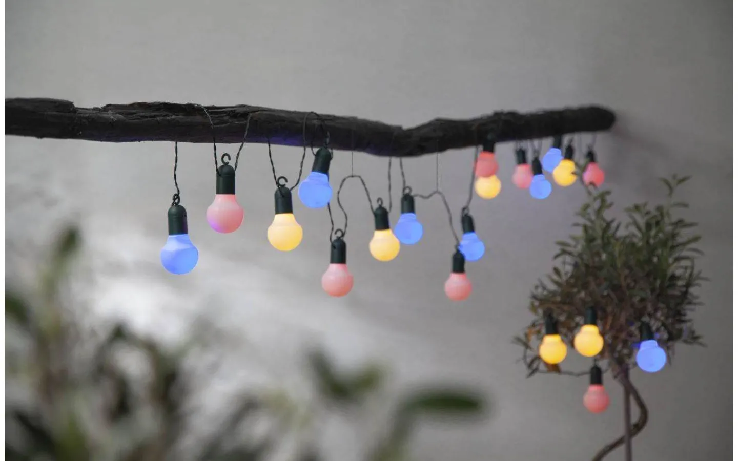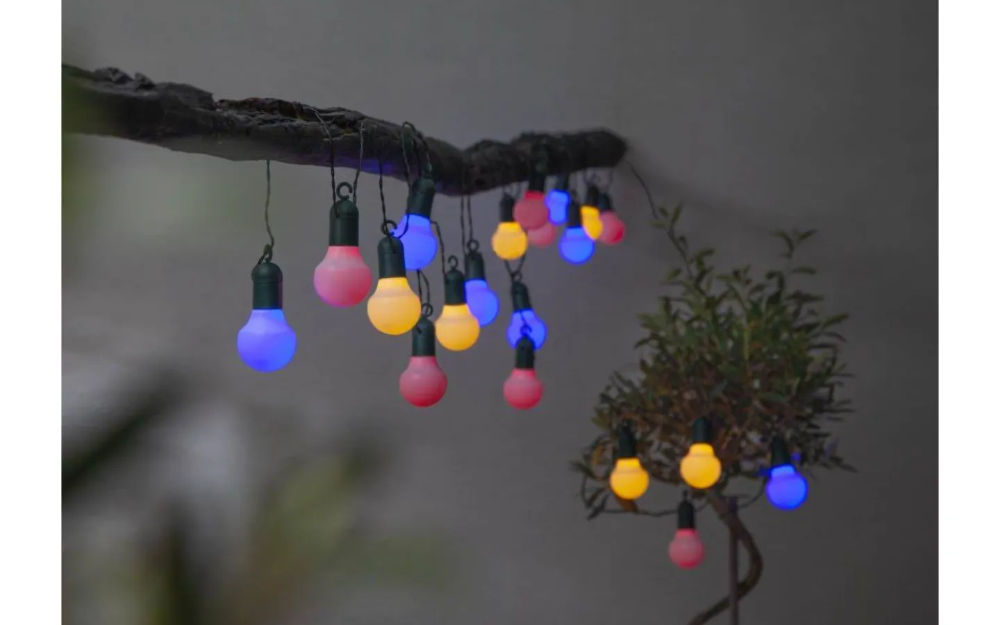 Denna fina ljusslinga har krokar som sitter ovanför varje ljuskälla vilket gör den enkel och smidig att hänga upp. På den 5,7m långa ljusslingan sitter 20st multifärgade LED lampor inuti vita yttre glober och varje lampa har en effekt på 0,035W. Lampavståndet är 30cm. Anslutningskabeln är 5 meter lång och transformator för vägguttag medföljer.